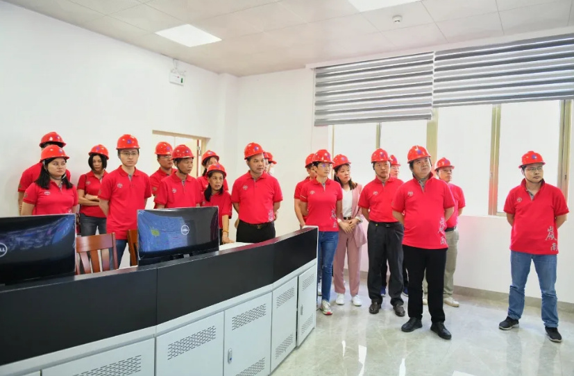 邦固董事长 汪博士带领大家参观生产车间、仓库、研发中心、生活区、食堂、宿舍、活动室