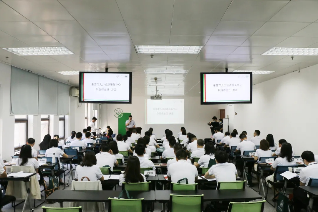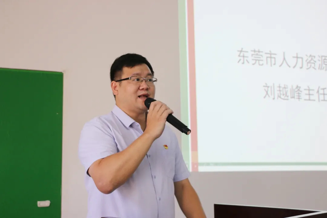 接着,东莞市人力资源服务中心刘越峰主任做开班动员讲话。他向大家介绍了本次培训项目的背景,对经过层层选拔入选此次培训的各位学员表示祝贺,希望各位学员能珍惜此次难得的培训机会,端正学习态度,明确学习目的,做到带着问题学、联系实际学、发散思维学,争取为东莞的发展作出应有的贡献。