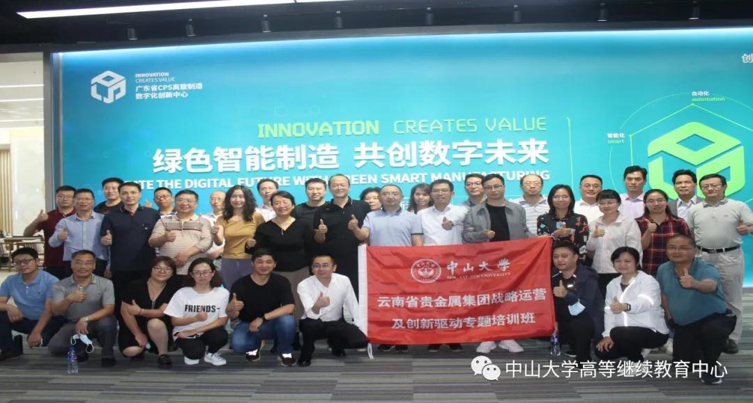 11月1日,云南省贵金属集团战略运营及创新驱动专题培训班开班仪式在中山大学南校园顺利举行。云南省贵金属新材料控股集团有限公司党委书记、董事长王建强 、中山大学高等继续教育中心副主任韦小妹及42名学员共同参与了开班仪式。此次培训邀请到校内外的知名教授和专家学者,为参训学员专题讲解战略管理、“双循环”发展、互联网思维、国学智慧与干部修养等内容。此外,培训班还组织学员到广东省CPS离散制造数字化创新中心参观学习,双方针对智能制造、精益制造、供应链管理运营等方面进行深入交流。
