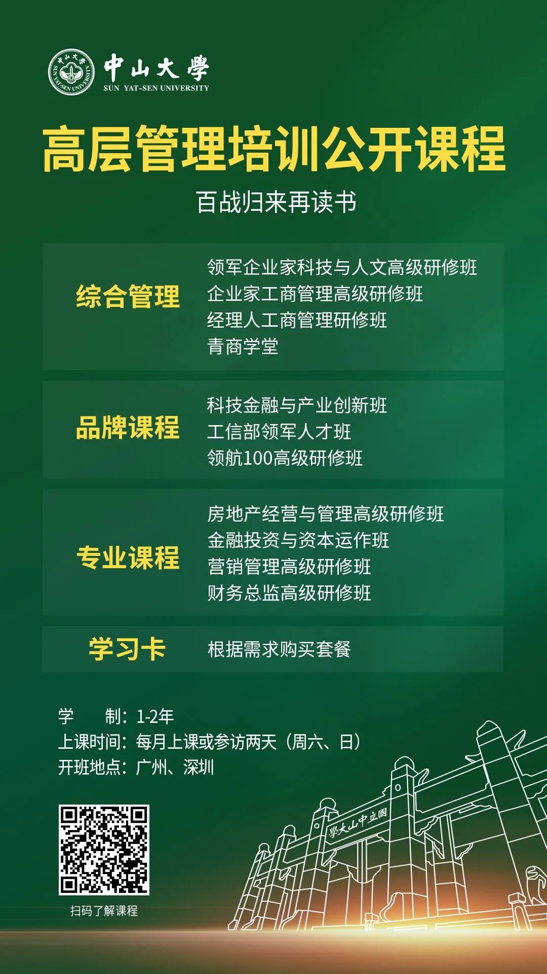 逸企播报:“学在中大,追求卓越”,为校友传递学校及企业管理培训的最新动态。