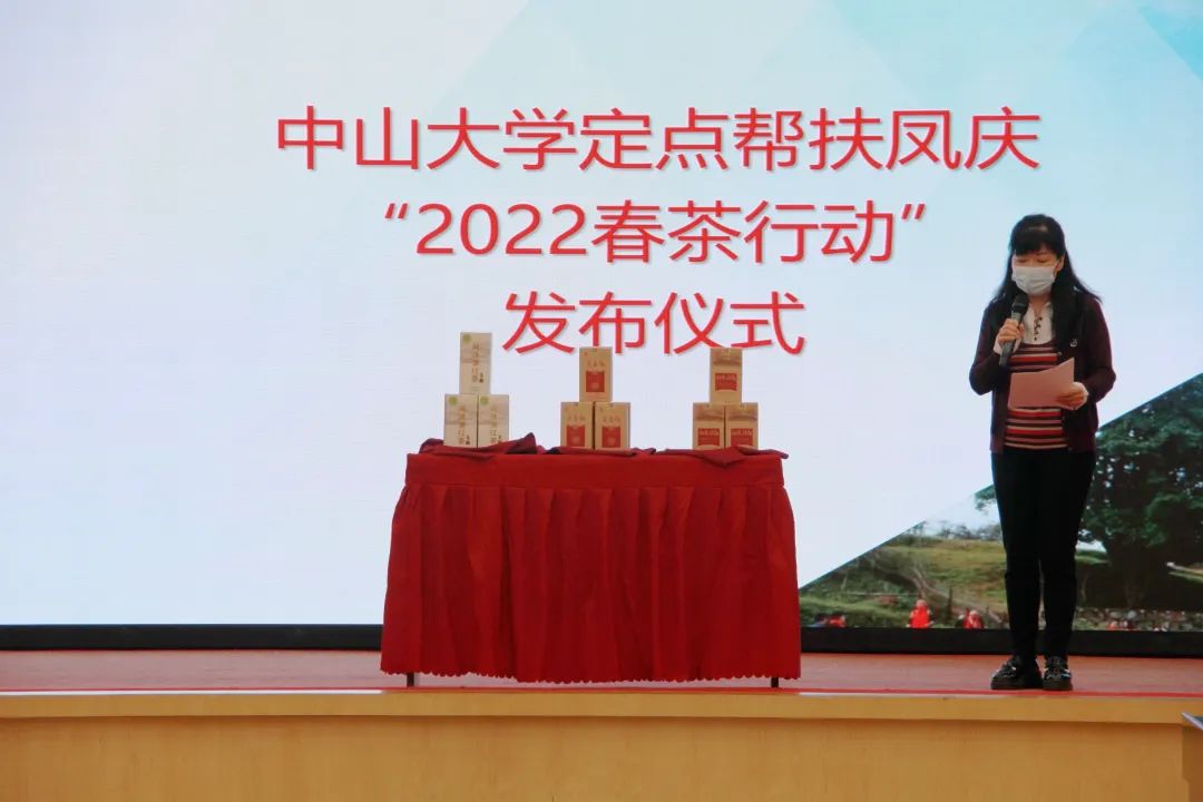 随后,“中山大学定点帮扶凤庆2022春茶行动”正式发布。校工会常务副主席许东黎发布了校工会、校友总会委托校友企业澜沧古茶和学校的帮扶企业凤庆大摆田茶厂专属定制的三款春茶。我校几十位学者、医生、学生和校友,录制视频《我为凤庆滇红茶打call》,义务为凤庆滇红茶代言,并由学校官方新媒体平台发布,以网络带货的形式推进“消费帮扶”。每售出一份春茶,销售额的10%将由企业捐赠到中山大学教育发展基金会乡村振兴专项。