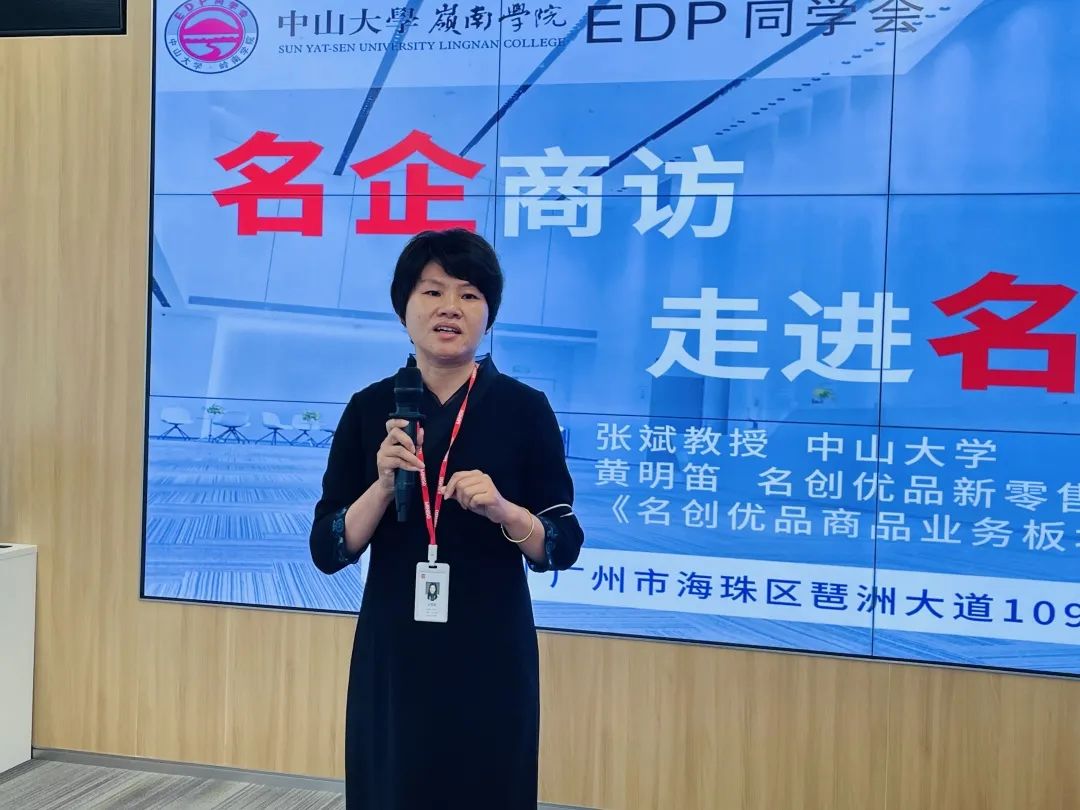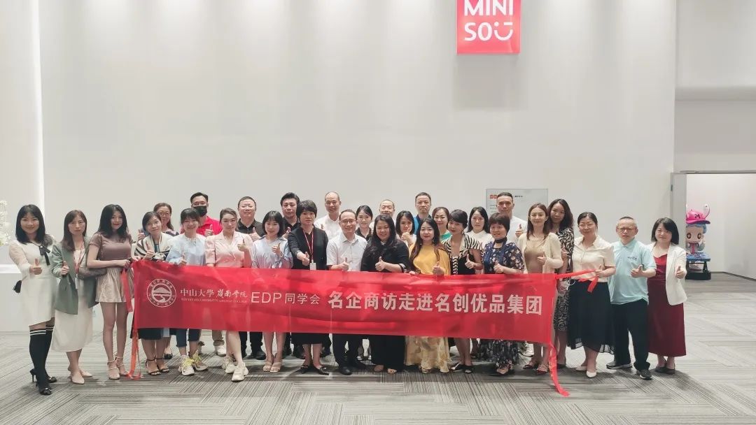 6月8日下午,中山大学岭南学院EDP同学会学习部组织名企商访走进名创优品集团,在中山大学教授张斌和学习部主管副会长揭冬汝的带队下,校友一行约30人走进“年轻人都爱逛”的生活好物集合店——名创优品集团。