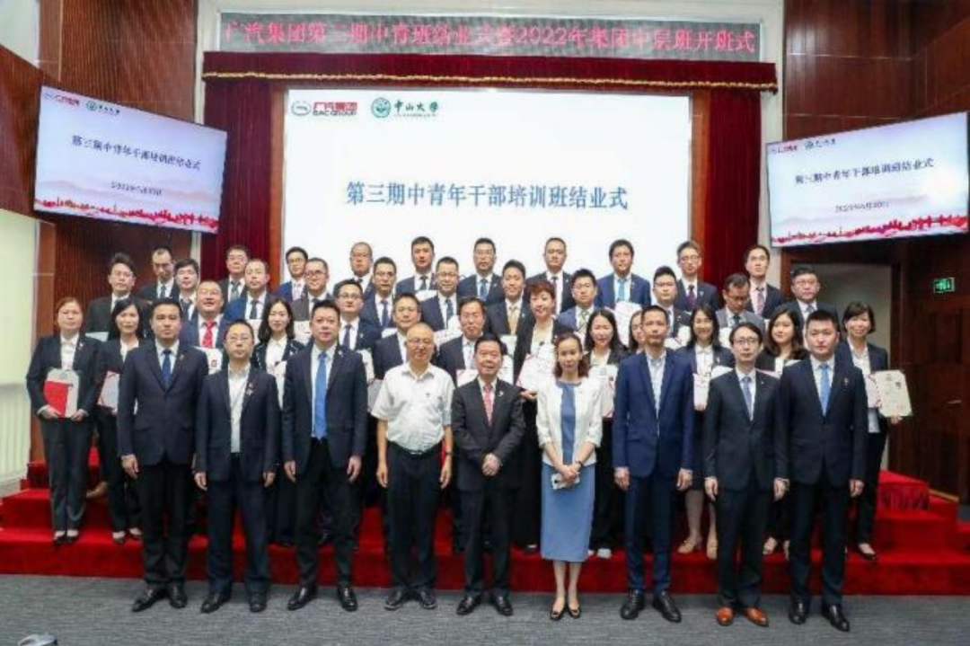 6月30日,广汽集团中青年干部培训班(第三期)结业典礼暨广汽集团2022年集团中层主体班开学典礼在广汽中心顺利举行。中山大学副校长李善民,中山大学产业集团总经理助理、广州中大紫荆教育总经理肖燕菲,广汽集团党委书记、董事长曾庆洪,党委副书记陈小沐,副总经理严壮立及广汽集团各投资企业相关领导,集团中层主体班25名学员、第三期中青年干部培训班35位学员共同参加了结业典礼和开班式。