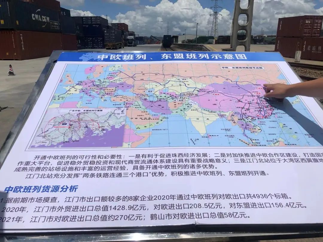 考察团随后来到鹤山珠西国际物流中心考察从江门北站始发的“江门号”中欧国际货运班列情况。中欧班列被誉为新时代的“钢铁驼队”,是“丝绸之路经济带”上的陆路运输骨干。“江门号”中欧国际货运班列开通运行,为鹤山的中欧合作提供了“加速度”,预示着江门推进中欧合作进入新阶段,更标志着江门进一步接入全球供应链产业链“大动脉”,在融入“一带一路”,全力打造国内国际双循环新发展格局中迈出关键一步。