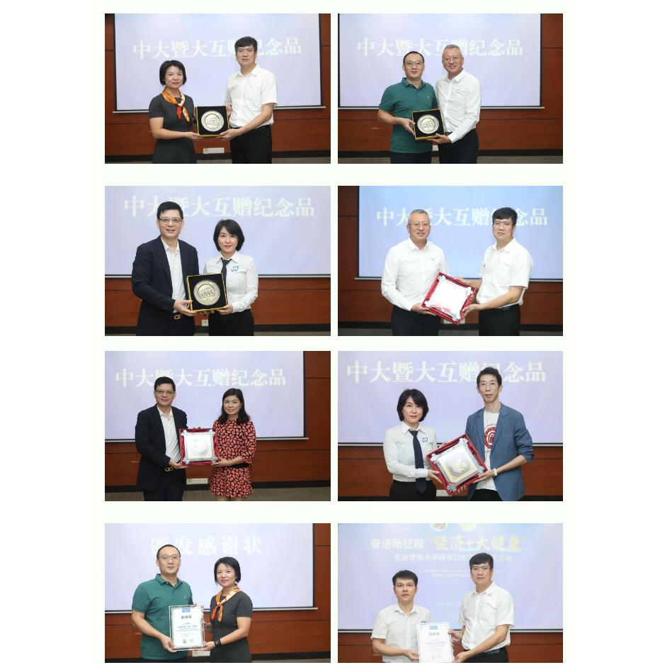 会议尾声,中大岭院EDP同学会大健康行会、暨大经济学院校友联谊会及暨南大学穗华口腔医院互赠了纪念品。同时为主题分享教授老师们颁发了感谢状。
