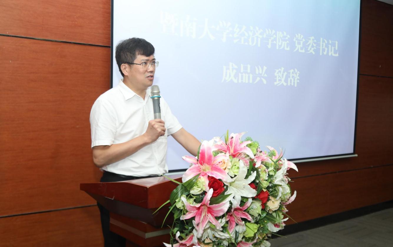成品兴书记表示本次联谊不仅是中大、暨大两大高校之间的联谊、同时也是大健康与医疗之间的联通,介绍了经济学院的发展历史,近年来在学科建设以及人才培养等方面所获成就。同时也谈到经济学院校友在社会各界发展情况,学校和学院极其重视校友工作发展,同时注重人才培养、学科优势,并且大力支持校友工作交互赋能,资源共享,互惠发展,为推动经济发展和大健康产业发展贡献力量。