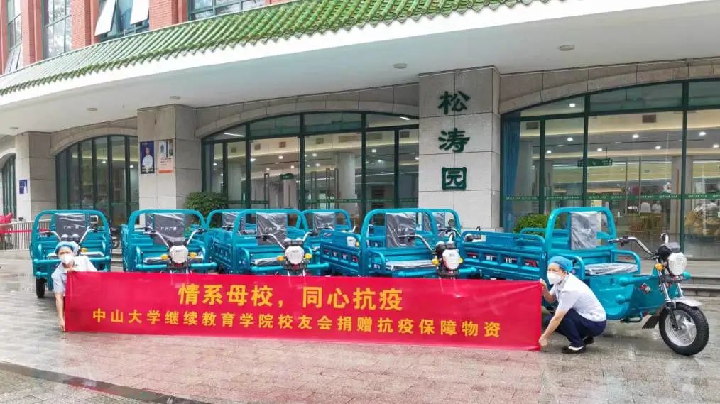 11月20日,中山大学EDP管院联合会捐赠海珠区防疫办6台电动三轮车,支持海珠区疫情重点片区生活物资配送工作,助力海珠区疫情防控工作。另,捐赠学校2台电动三轮车、78个睡袋,提供给学校后勤保供部门使用,支持学校防疫工作。