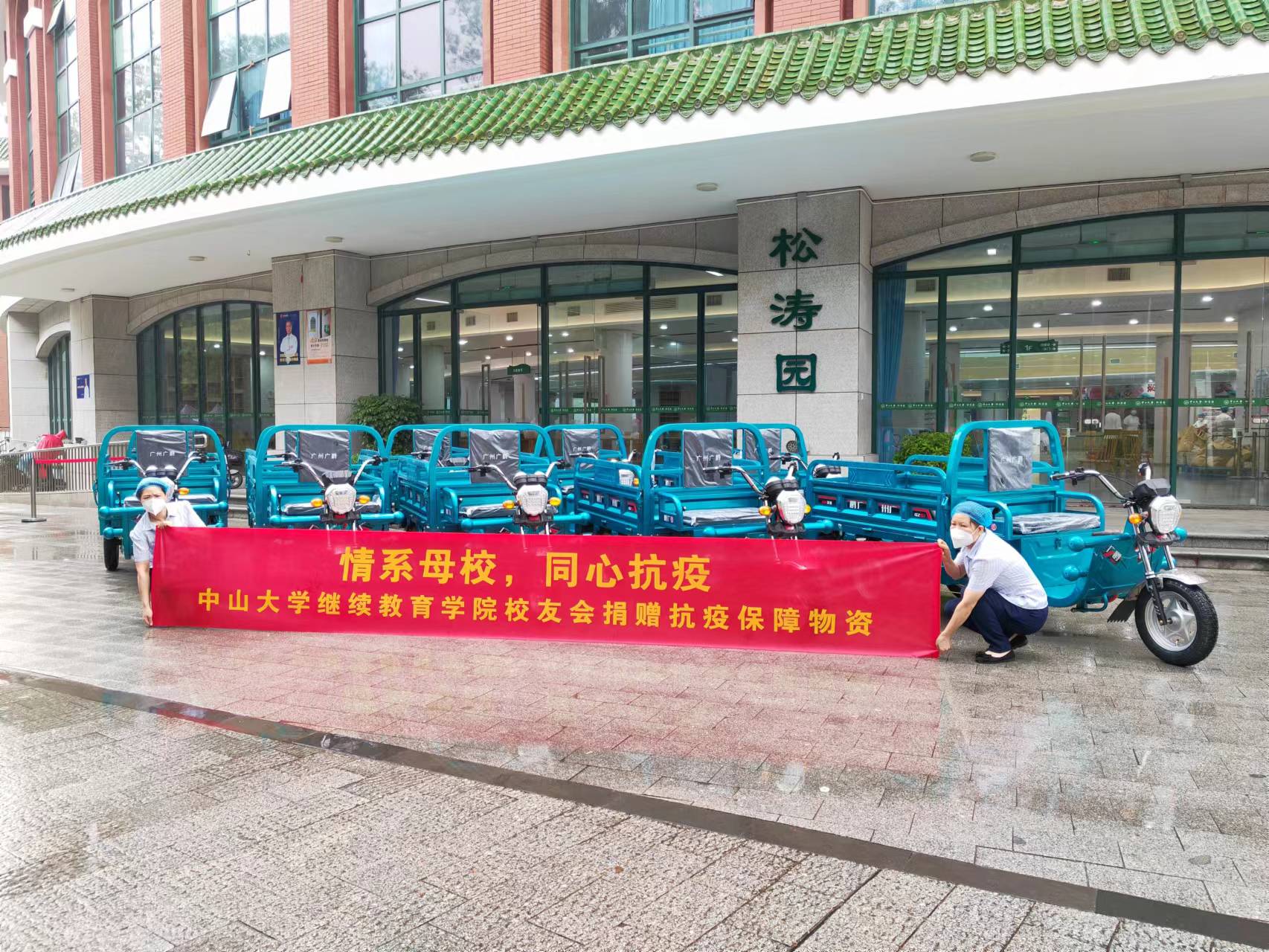 11月,海珠疫情告急,在学校面临严峻疫情挑战之时,校友情系母校,同心抗疫,继续教育学院校友会及其各分组织,广大校友和校友企业纷纷爱心支援,捐赠学校急需物资,包括电动三轮车、保暖衣、雨衣、凉茶饮料、N95口罩、消毒酒精、洗护用品等防疫保障物资,提供给学校后勤保供部门使用,支持学校防疫工作。点滴汇聚大爱,同心共克时艰!