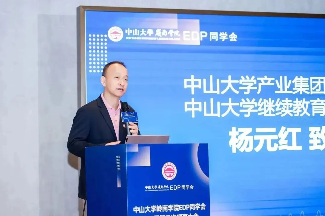 中山大学产业集团党委书记、中山大学继续教育学院院长杨元红为大会致辞,充分肯定了岭院EDP同学会的发展成就,向同学会校友们致以衷心的感谢。寄语第五届理事会凝心聚力,弘扬“博学、审问、慎思、明辨、笃行”的中大校训,奋勇前行,做出卓越品牌。