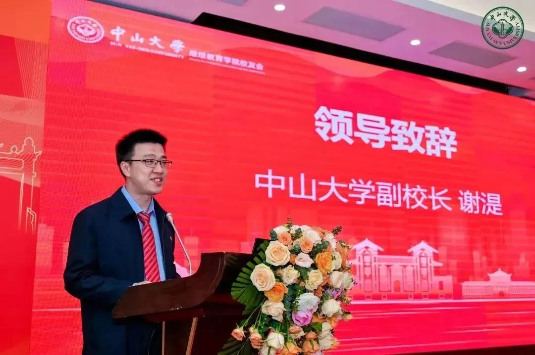 中山大学副校长谢湜致辞,代表学校热烈欢迎各位校友代表的到来,衷心感谢校友们一直以来对母校发展的支持,表达了母校对校友工作的重视以及百年中大的发展期许。期盼与各位校友一起弘扬百年中大精神,赓续优良办学传统,凝聚校友师生力量,站在更高的历史起点上,奋力书写百年中大新篇章,一起建设和见证中山大学更美好的明天。
