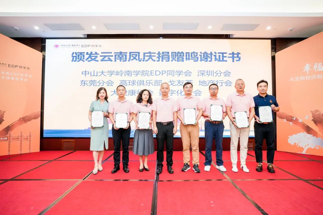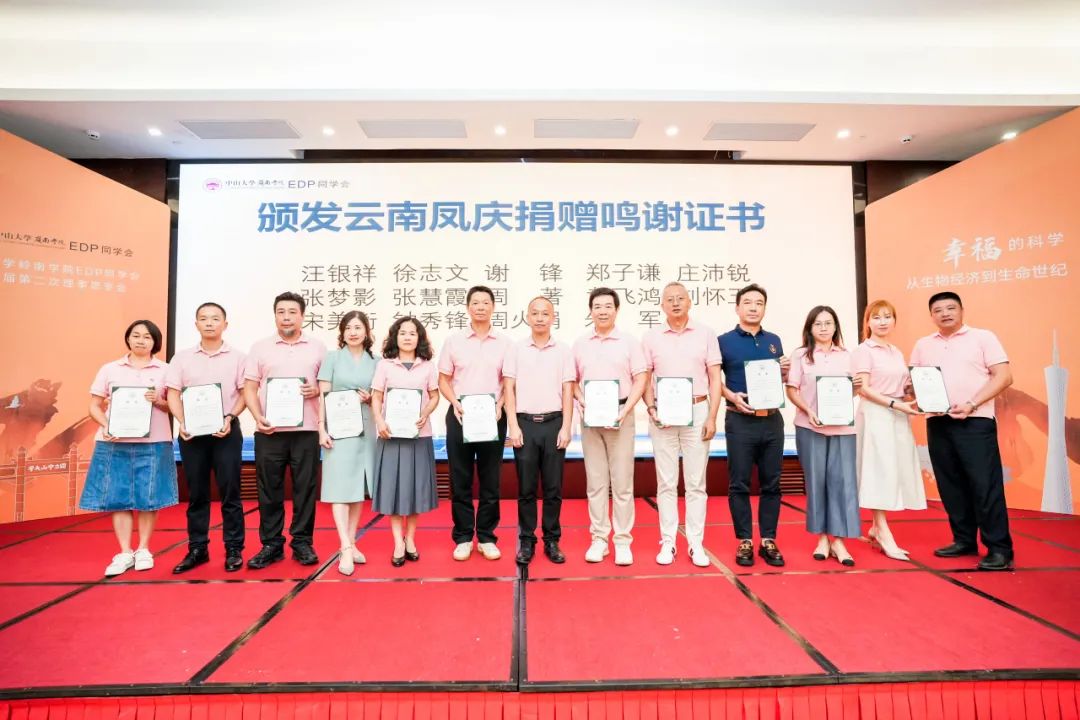 涓涓细流,汇聚善意之海。5月初,中山大学继续教育学院校友会发起凤庆县爱心募捐行动,岭南学院EDP同学会各部门各分会和校友们积极响应,短短一周时间筹得了33.6万,最终与兄弟分会共筹得善款一百万元,支持凤庆县东城完全小学项目。“理事思享会”上, 向所有在云南凤庆助学项目中捐赠的部门和个人颁发鸣谢证书,感谢校友们多次用实际行动为凤庆当地发展建设贡献力量,充分展现了中大人的家国情怀。