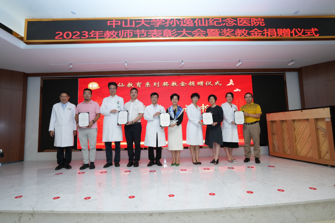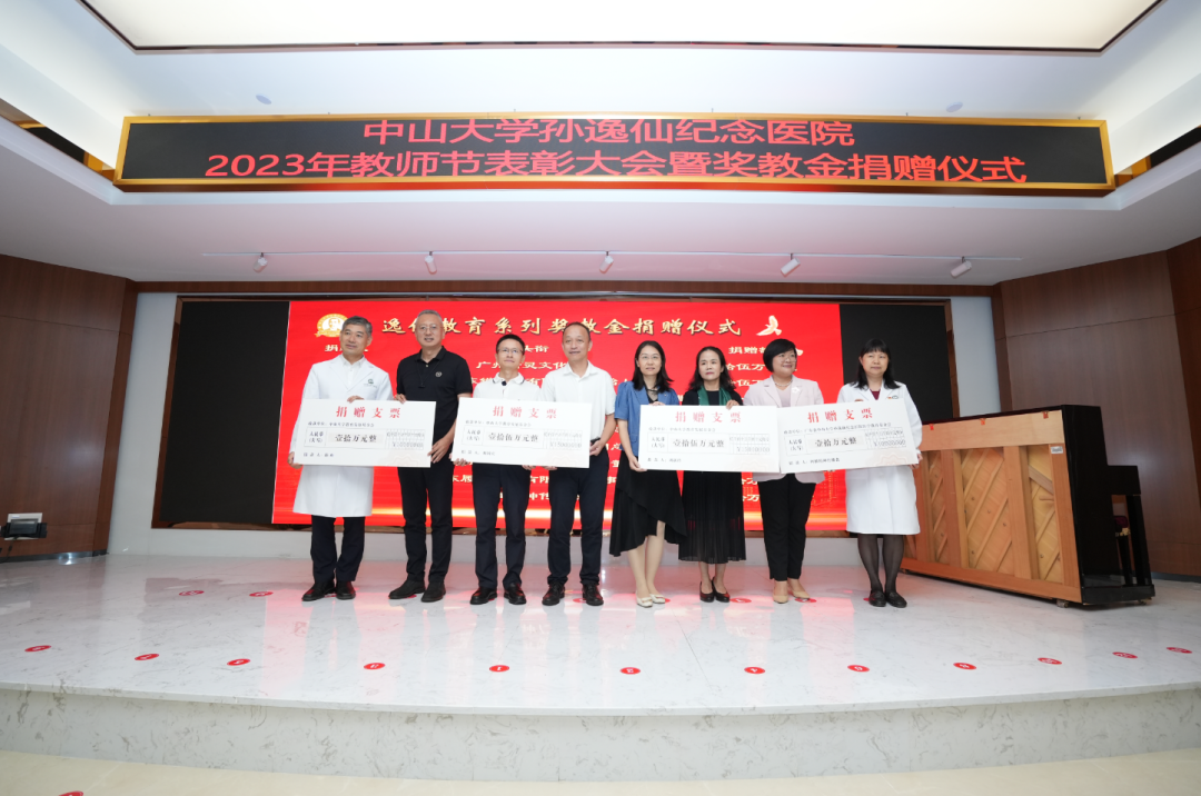 9月6日下午,孙逸仙纪念医院隆重举行庆祝2023年教师节表彰大会暨奖教金捐赠仪式,医院院长宋尔卫院士、医院党委书记古小红、中山大学继续教育学院院长、产业集团党委书记、董事长杨元红、中山大学校友会副秘书长黄婷婷等出席大会。逸仙教育系列奖教金项目捐赠人、中山大学岭南学院EDP同学会和继续教育学院校友会企业家联合会校友刘新玲、刘国宾、陈山、余俊贤、付常山、汪博士的代表刘冬、吴启超家人代表洪晓明,柯麟精神传播者代表受邀出席活动。