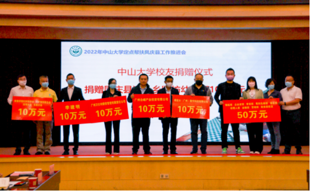 2022年5月,在中山大学高松校长、杨元红院长的带领下,中大多部门和校友们亲赴云南凤庆开展考察调研和乡村振兴助学帮扶工作。继续教育校友爱心捐赠云南凤庆诗礼乡牌坊村幼儿园100万元,并翻山越岭驱车近9个小时前往牌坊村完小进行“一帮一”助学慰问活动。