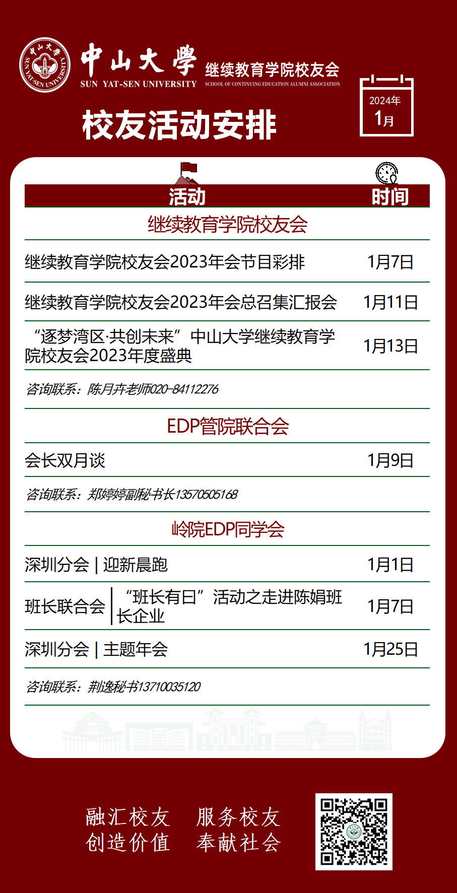 校友活动月报,传递最新校友活动播报: 浓情暖冬,岁末同舟,2023年12月,校友会各分组织积极举办多场精彩纷呈的活动。链接校友,创新价值,打造高质量校友交流平台,欢迎校友们关注支持,一起向未来!