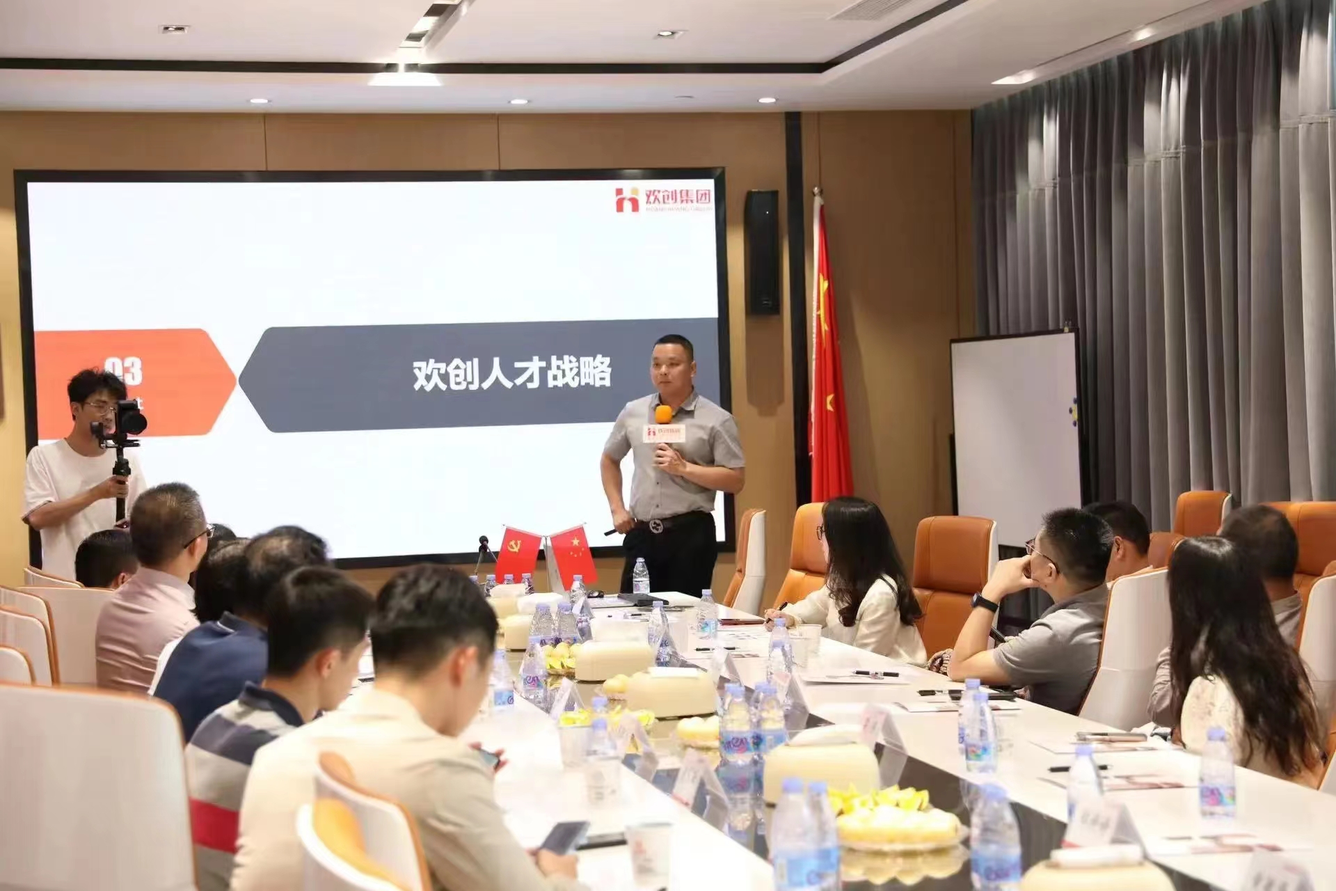 4月16日,中山大学EDP管院联合会班长联合会季度交流活动——走进欢创集团成功举办。EDP管院联合会秘书长庞紫凝,班长联合会联席理事长罗宁弟、王彬、张相礼,执行理事长陈泽宏、张霖、高雯、陈耿升等班长联合会成员们共20余人参加了此次活动。校友们首先参观了欢创集团,了解了公司的办公环境、企业文化及业务布局,其创新的商业模式、高效的运营管理和卓越的业绩成果给在场的校友留下了深刻的印象。本次活动分享的主题为“不确定时代下老板必懂的人和钱的那些事儿”,班长联合会联席理事长罗宁弟从欢创集团的商业模式出发,分享了“慧眼识英雄”的秘诀,还对财税知识进行了深入浅出的讲解,使校友企业在当前不确定的市场环境下学会如何调整战略和优化管理,以实现持续稳健的发展。