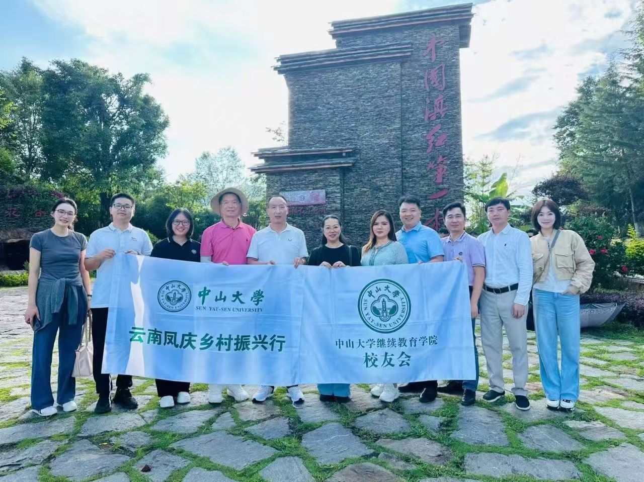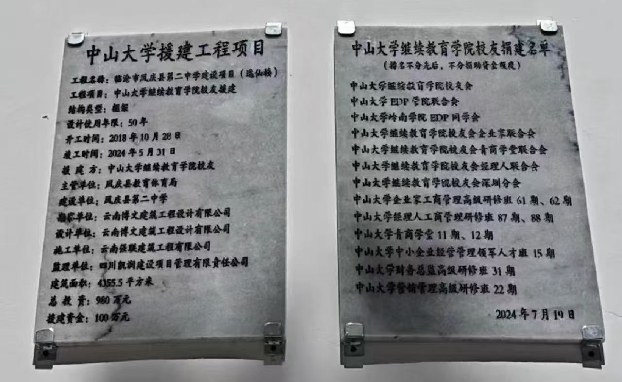 7月18-20日,中山大学陈春声书记、高松校长带领学校多个学院、附属医院和有关部门的专家教授、负责人与校友代表100余人赴云南凤庆开展乡村振兴和教育帮扶推进工作。继续教育学院由何晓钟院长带队,学院老师和校友10余人参加了本次活动。19日上午,在学校领导的带领下,校友们带着大爱与真情前往凤庆县第二中学参加“逸仙楼”落成典礼。继续教育学院校友会名誉会长吴海能作为校友代表,与校领导一起为“逸仙楼”落成剪彩。当天下午,校友们参加中山大学定点帮扶凤庆工作调研推进会。会上,何晓钟院长与校友代表吴海能、傅志东、陈韵涛、黄雪刚、唐世文向凤庆县第二中学递交了100万元捐赠支票。活动期间,校友们还考察调研了勐佑云上花海、滇红第一村、滇红博物馆、核桃交易中心等文旅、红茶、核桃产业,体验中大“凤庆计划”乡村振兴成果。世纪中大,山高水长;拳拳爱心,情意暖暖。感恩校友们为凤庆乡村振兴和教育事业发展贡献爱心力量,用行动彰显了中大校友的责任与担当,用爱传播希望!