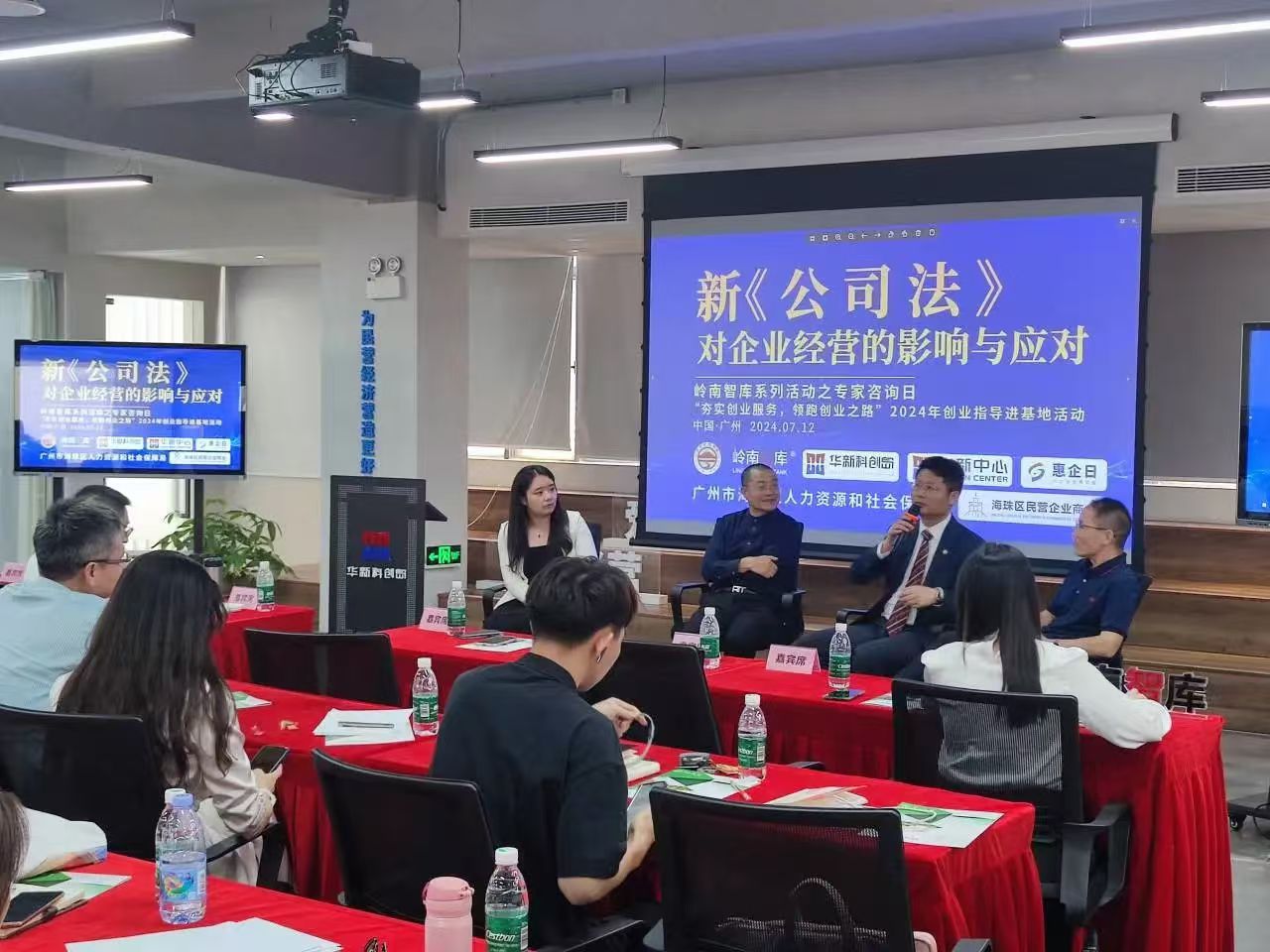 7月12日下午,中山大学岭南学院EDP同学会岭南智库法律&财税专委会专家咨询日活动--《新<公司法>对企业经营的影响与应对》成功举办。中山大学继续教育学院校友会常务副秘书长陈月卉老师、岭南智库主管副会长李会华等中大校友、广州市海珠区人力资源和社会保障局代表、华新科创代表等近50人汇聚华新科创岛政企服务中心,共同参与本次活动。三位专家为企业家们解读新鲜出炉的《公司法》,法律专委会刘怀玉律师分享《基于〈公司法〉最新修订内容的注册资本5年内实缴、责任、补救措施》,唐向阳律师分享《股权转让的三大变化及避坑指南》,财税专委会李同云老师分享《新〈公司法〉下的涉税风险及机遇》,干货满满,为企业的发展保驾护航。互动交流环节,参会人员纷纷感谢专家们的用心分享,并表示学到了很多操作性强的细节,明晰了过往很多疑惑。同时,对于参会人员提出来的疑问,专家们毫无保留的予以逐一回应,用心赋能校友发展。