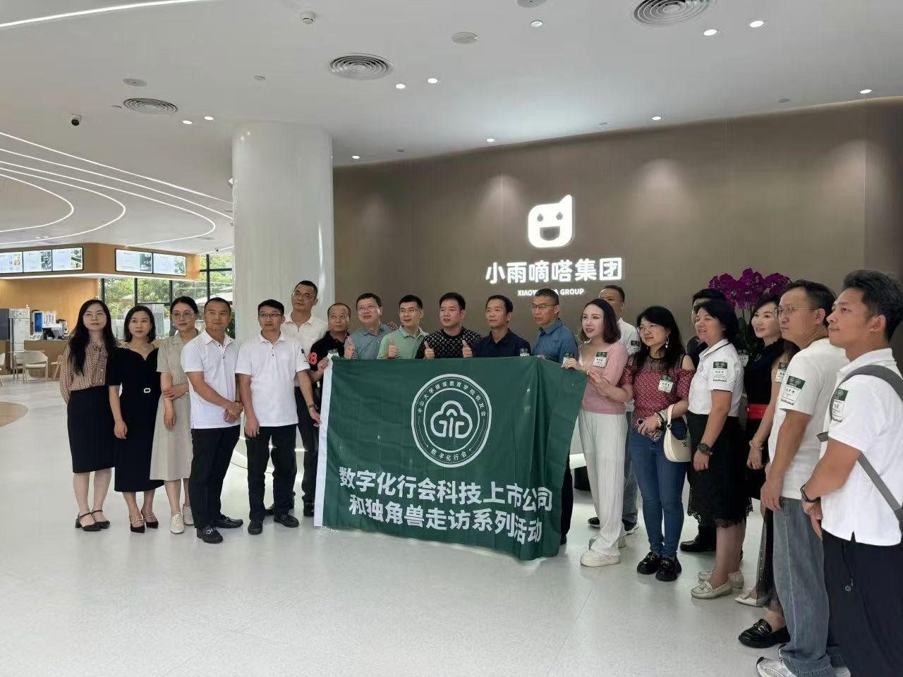 7月18日下午,中山大学岭南学院EDP同学会数字化行会科技上市公司和独角兽走访系列之参访小雨嘀嗒成功举办。中山大学继续教育学院校友会常务副秘书长陈月卉老师、岭院EDP同学会数字化行会理事长董海荣、执行理事长喻晓马、闫小童、周继宗、秘书长杨丽媛以及行会会员、中大校友、相关行业嘉宾等近30人走进行会副理事长罗聪的企业小雨嘀嗒集团参观交流。集团总裁、行会副理事长罗聪带领大家参观集团大楼,并进行小雨嘀嗒介绍分享,让与会人员充分了解到小雨嘀嗒的发展历程、布局规划、卓越成就以及优秀的数字化技术和运营管理模式。互动交流环节,罗聪副理事长为校友们答疑解惑,热烈探讨有关数字化产品与服务、培养数字行业人才等问题,赋能校友和企业。数字化赋能,点亮新未来。探索数字化时代发展新趋势,行会一直在路上。