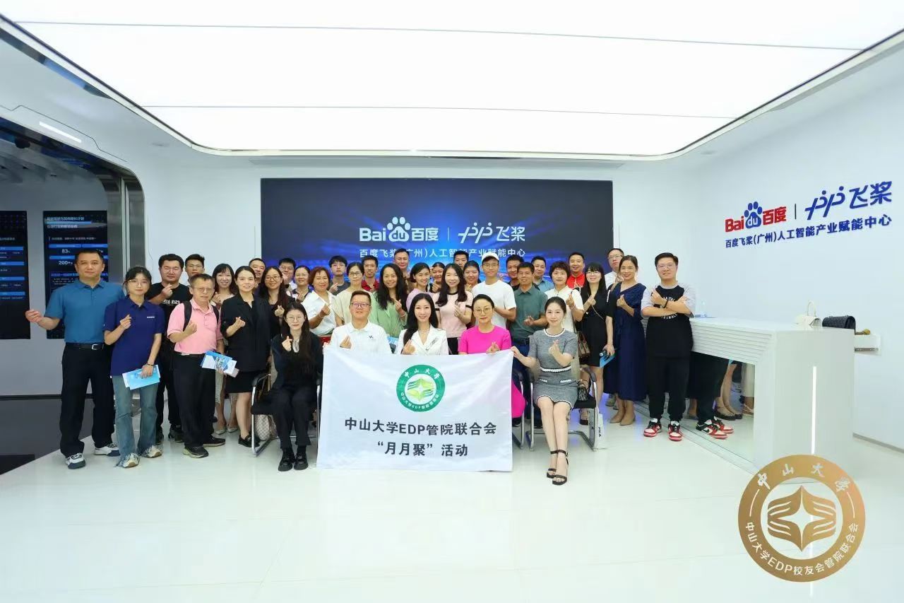 7月25日,中山大学EDP管院联合会【月月聚2024第5期】“数字湾区,拥抱AI时代的商业变革”主题活动成功举办。本次活动由科创联盟和思享会共同承办,中山大学EDP管院联合会会长李秀玲、大湾区科创中心部长关家龙老师、思享会理事长宋波等理事会成员们和科创联盟成员们约50人参加了本次活动。当天上午,校友们首先前往百度飞桨(广州)人工智能产业赋能中心,亲身体验了AI技术如何赋能产业升级,激发了对未来商业发展的无限遐想。当天下午,校友们前往深圳参观了深圳市来画科技总部。来画科技通过一系列生动的案例分享与技术演示,让大家深刻感受到了AI技术在提升创作效率等方面的巨大潜力和AI赋能内容创作的无限可能。最后,校友们经深中通道返程广州。这条连接深圳与中山的超级工程,不仅展示了粤港澳大湾区基础设施的飞速发展,也成为了本次赋能之旅的见证者。在交接仪式上,本月承办方把旗帜交给下个月的承办方双碳环保专委会、绿色建筑绿色建材专委会和羽毛球俱乐部的代表们,将“月月聚”的精神传承下去。