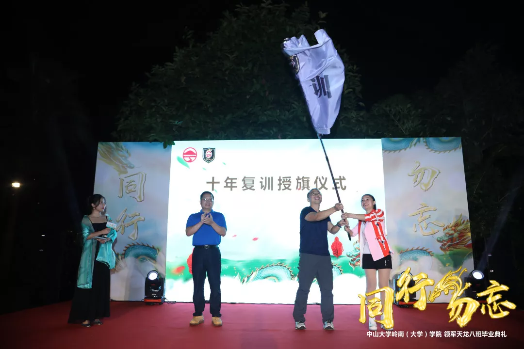 班级轮值主席麦海同学和轮值秘书长朱少清同学从梁国德班长手中接过十年复训的旗帜,意味着从此刻开始,8班的复训计划已正式开启。稍后进行了富有趣味性的颁奖及拍卖,让每一位同学拿到属于自己的特殊奖励。