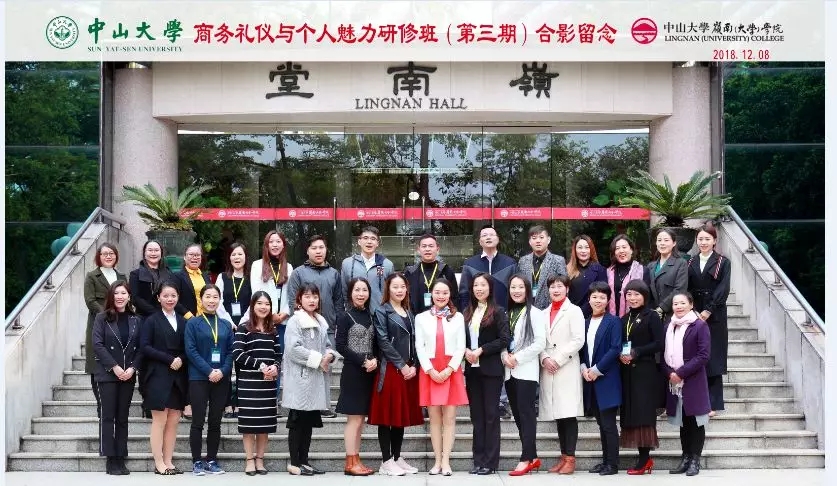 12月8日上午8点30第三期商务礼仪与个人魅力研修班开学典礼正式开始!典礼由林思雨老师主持,林老师代表中心对大家的到来表示了热烈地欢迎!并由席老师为大家详细讲述了中大百年的历史~ 大家一起唱起中山大学校歌!