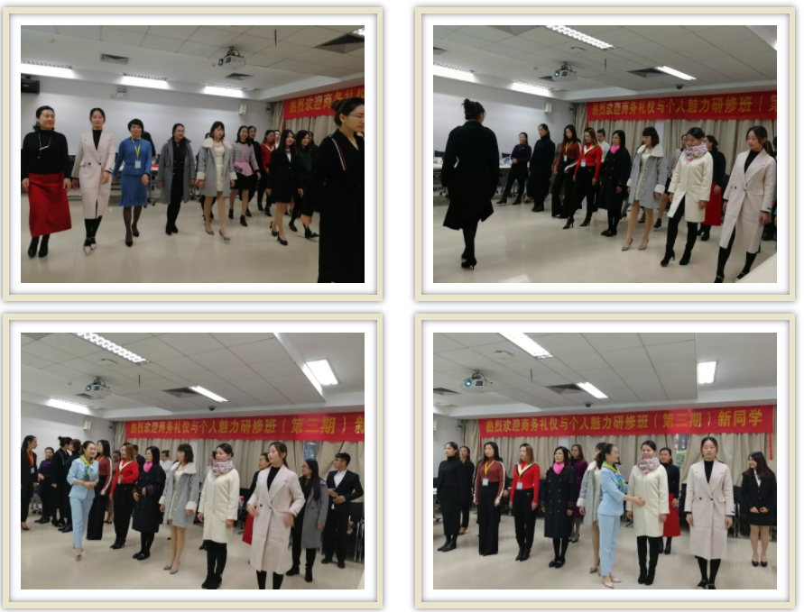 课程结束后,徐老师带着大家练习走秀,一个个昂首挺胸!亭亭玉立!