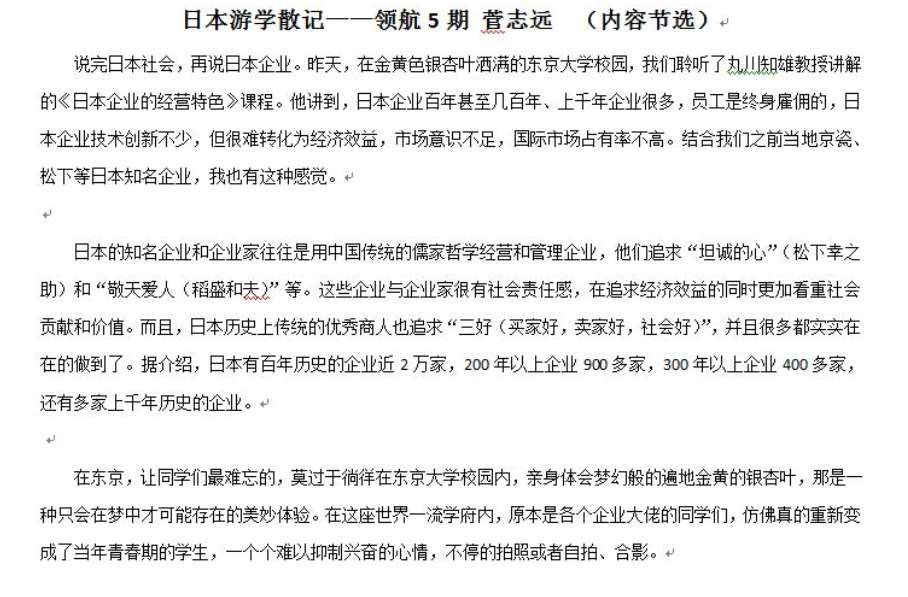 日本作为世界第三大经济体,发达的制造业是国民经济的主要支柱,科研、航天、制造业、教育水平均居世界前列。来到日本,首先安排了企业考察,体验和学习日本企业及其经营者的管理经验及精髓。