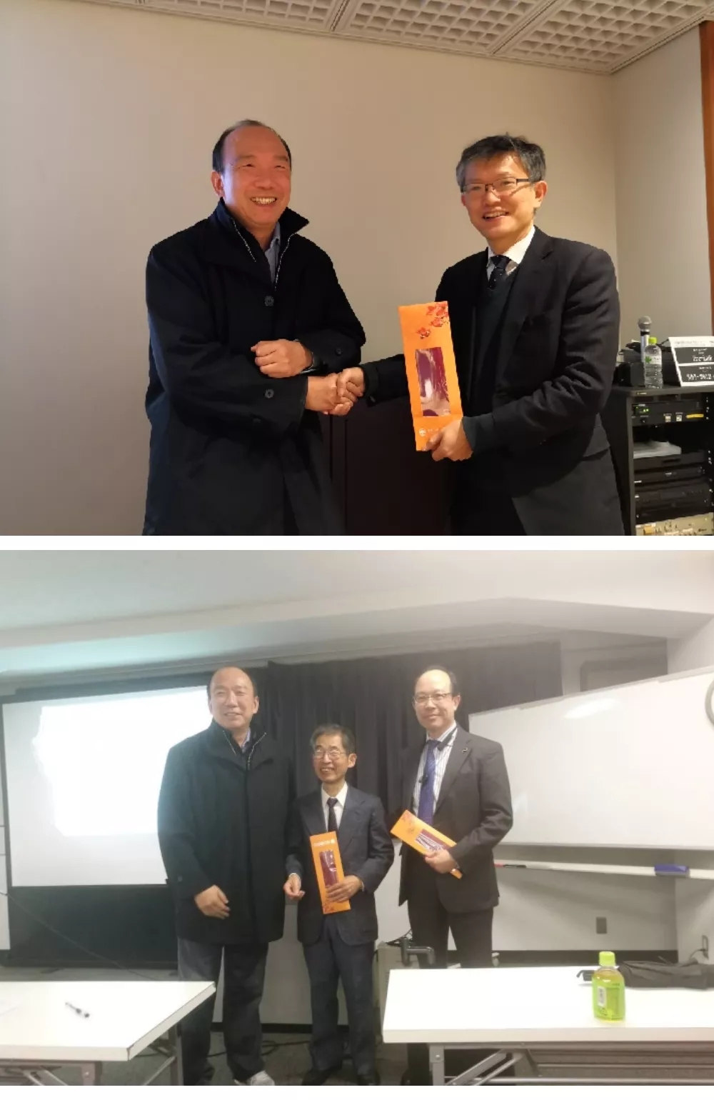 课程后,王燕鸣教授代表班级给日本教授们赠送纪念品,希望以后有机会继续加强两高校的互动。