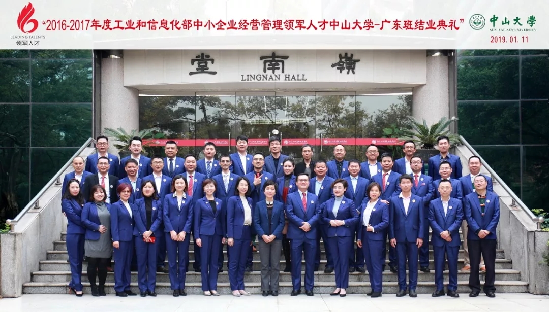 2019年1月11日,2016-2017年度工业和信息化部中小企业经营管理领军人才中山大学-广东班在学校举行了隆重的结业典礼。