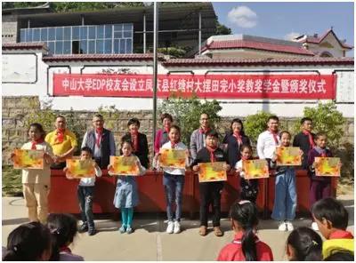 ▲中大EDP校友设立凤庆县红糖村大摆田完小奖教奖学金暨颁奖仪式