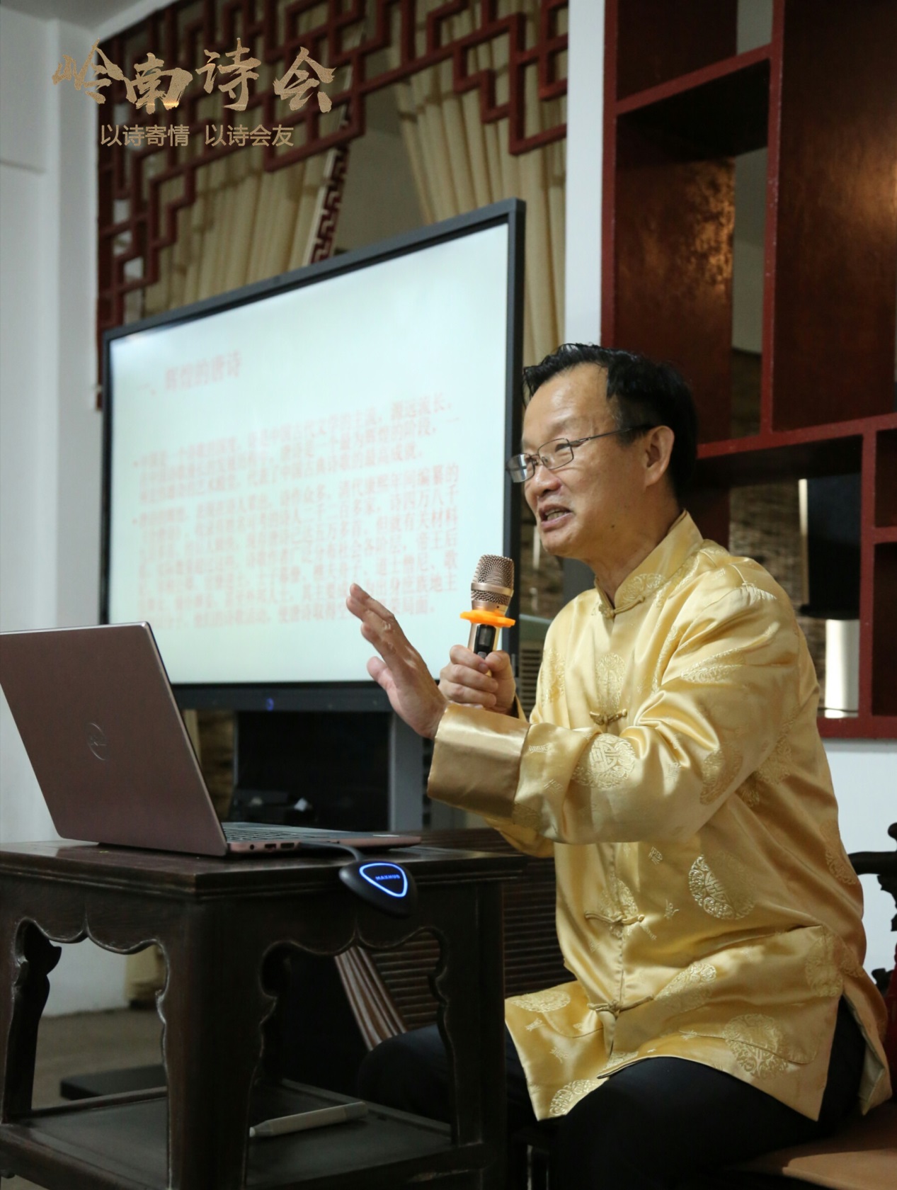 这首是熊东遨老师创作的诗,他是本次诗会的分享嘉宾,熊东遨老师本次分享的主题是:《莲藕镜》,细腻分析了唐宋诗词的诸多不同风格,并结合自身创作经历,告诉我们,诗词讲究精炼,尽量用最少的文字表达出最多的意思。