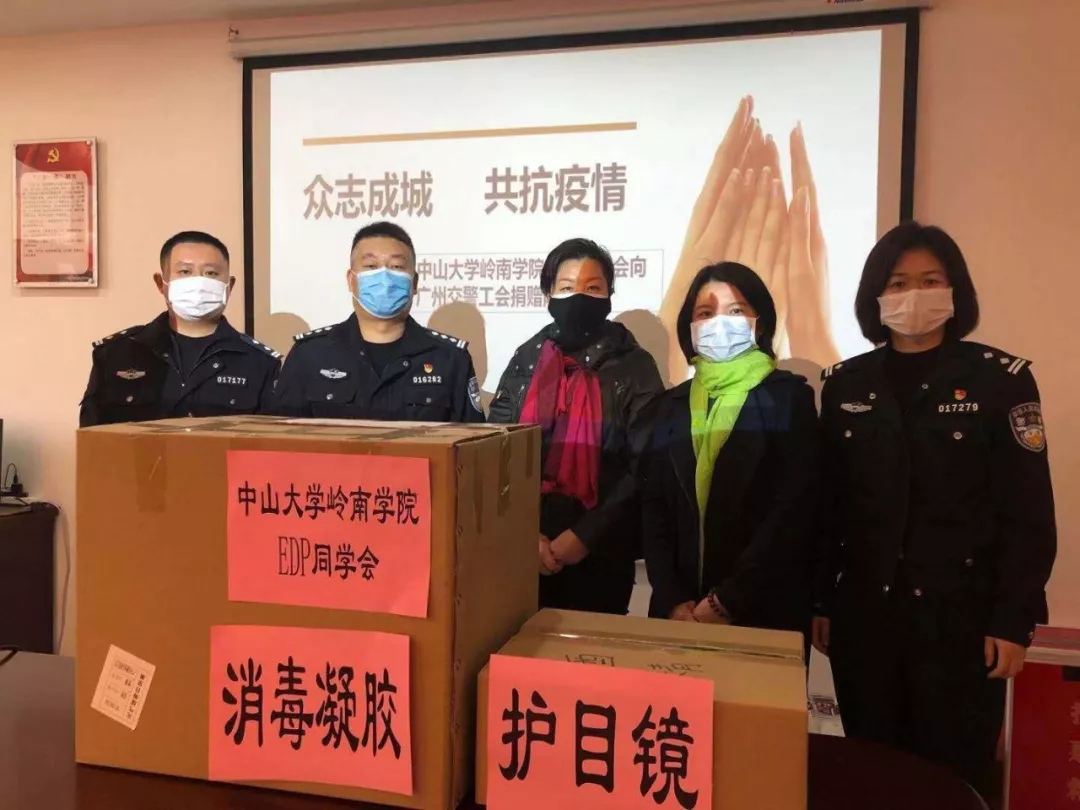 2月初,中山大学岭南学院EDP同学会为广州市公安局越秀分局捐助护目镜300个。捐助的物资用于公安系统工作者抗疫工作期间的防护。