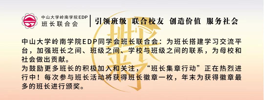 中山大学岭南学院EDP同学会班长联合会第三届理事会于2019年11月9日顺利换届,新班子,新活力,新动能。