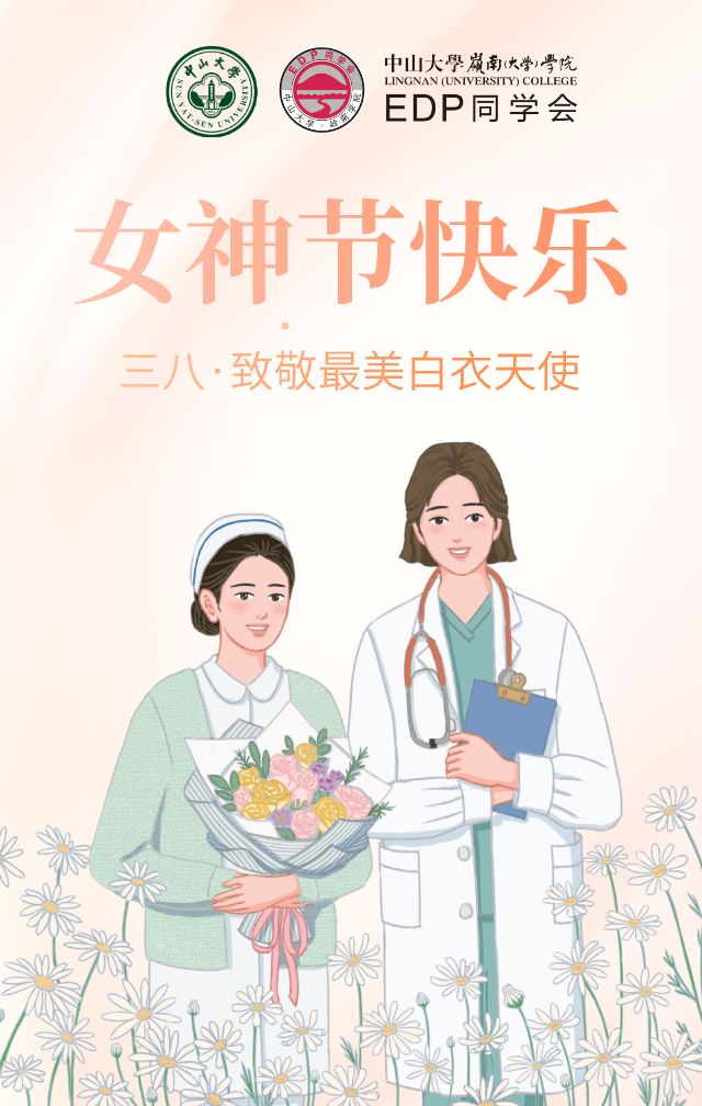 值此三八国际妇女节之际,中山大学岭南学院EDP同学会谨代表全体中大EDP校友,向坚守在每一方抗疫阵地,包括医疗救治、联防联控、群防群治、爱心援助、复工复产;向每一位坚守岗位,共同战“疫”的女神们,致以最衷心的感谢和最崇高的敬意!
