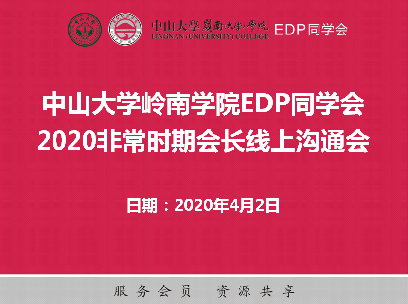 “服务会员,资源共享。”我们将继续发挥中山大学岭南学院EDP同学会的力量,互帮互助,共克时艰,共同迎接春暖花开!