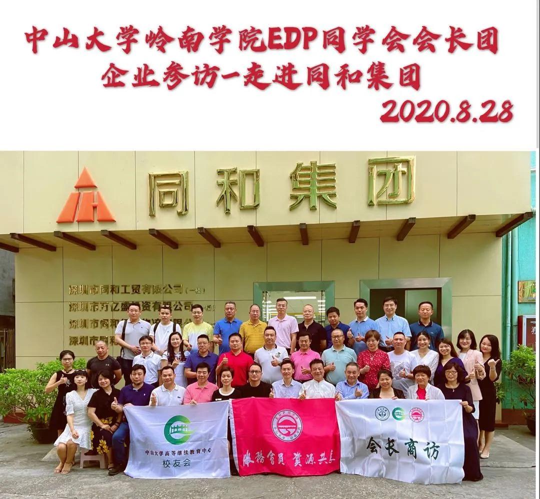 为了加强中山大学岭南学院EDP广深莞三地同学会之间的交流联动,2020年8月28日,中山大学岭南学院EDP同学会广州总会及东莞分会的会长成员组织前往深圳,到深圳分会古建中会长的企业——同和集团进行商访交流,并就“深度解析企业经营发展之路”为主题进行了座谈探讨。中山大学岭南(大学)学院党委书记陈险峰、中山大学高等继续教育中心副主任韦小妹老师、EDP同学会总会吴春清会长、汤聪荣誉会长、东莞分会肖锡洪会长、深圳分会古建中会长等40多位老师会长成员参与本次商访活动。