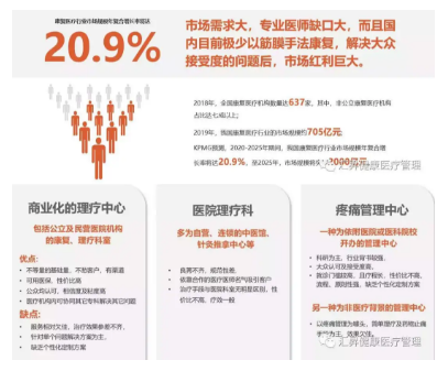 根据相关的数据,康复医疗行业市场规模年复合增长率将达20.9%,意大利筋膜手法康复治疗对比其他康复行业优势尤其突出。
