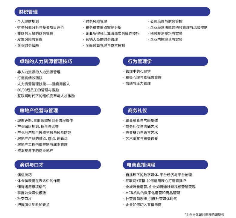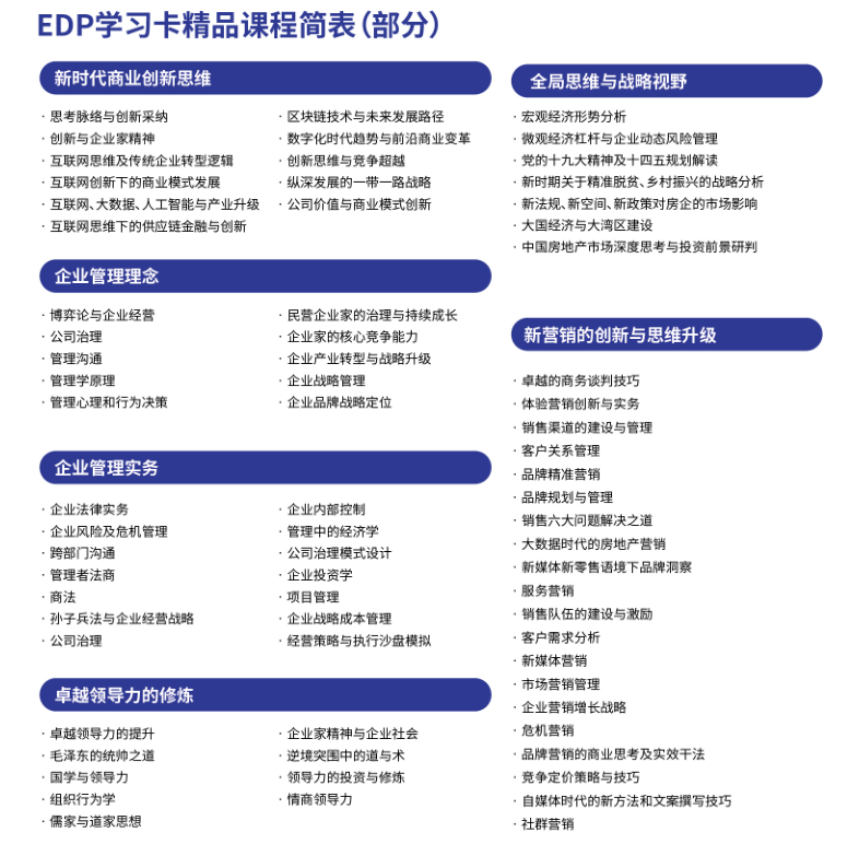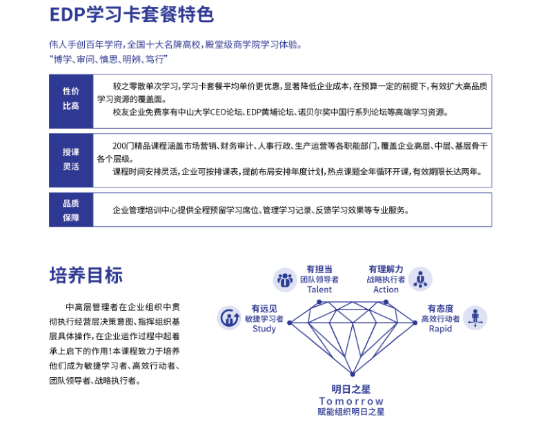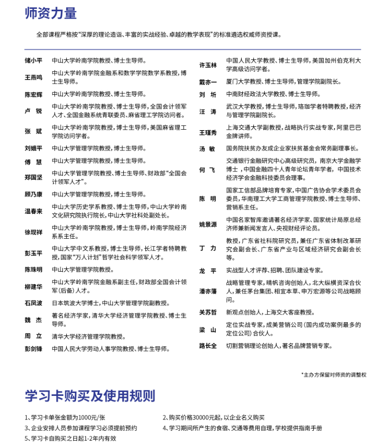 导航痕迹 中山大学岭南学院高层管理教育(EE)中心 公开课程 学习卡 中山大学EDP学习卡 综合|人文百师讲堂 综合|企业家工商管理高级研修班 综合|经理人工商管理研修班 综合|青商学堂 专业|金融投资与资本运作班 专业|财务总监高级研修班 专业|营销管理高级研修班 学习卡 中山大学EDP学习卡 咨询余老师 020-84111444 符老师020-84112091 缴费方式1、支票:抬头 中山大学2、转账:收款单位:中山大学开户银行:中国建设银行广州中山大学支行帐 号:44050143004609000002-0003事由:学习卡(企业名)学费学费: XXXXX元(备注:转账后将银行回执传真到020--84112120确认,并注明发票抬头)