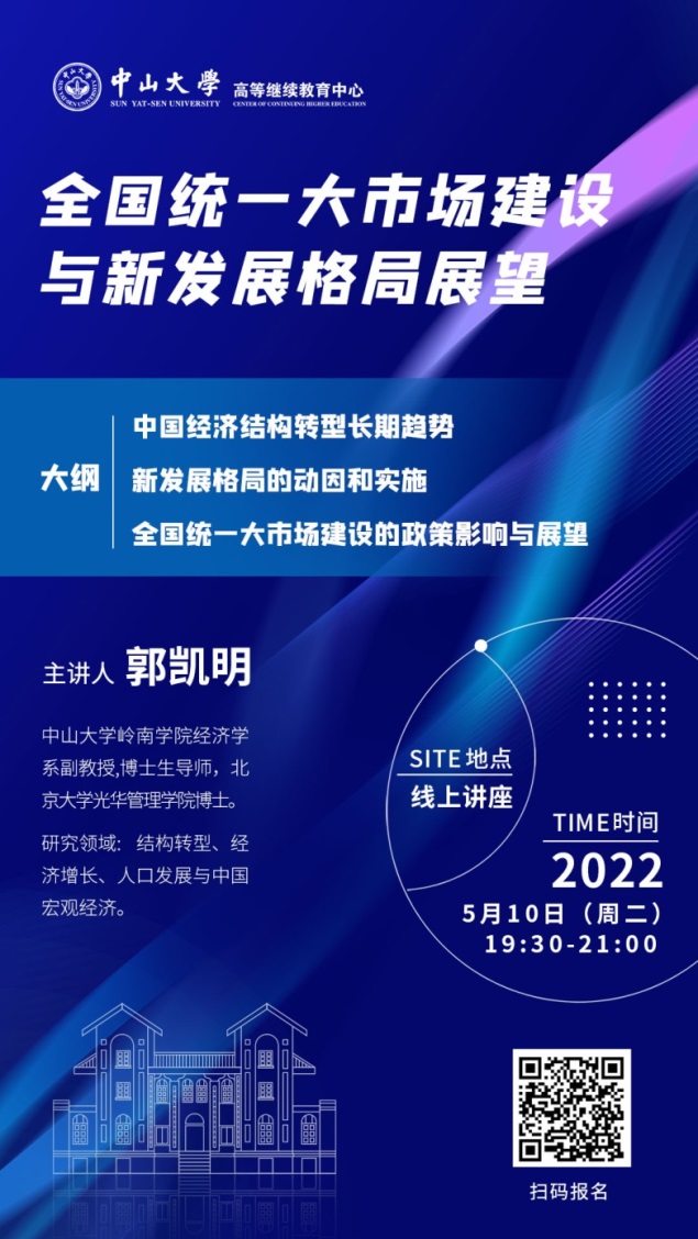近期,我们非常荣幸请到中山大学岭南学院的郭凯明副教授,为大家作主题为“全国统一大市场建设与新发展格局展望”的线上讲座。