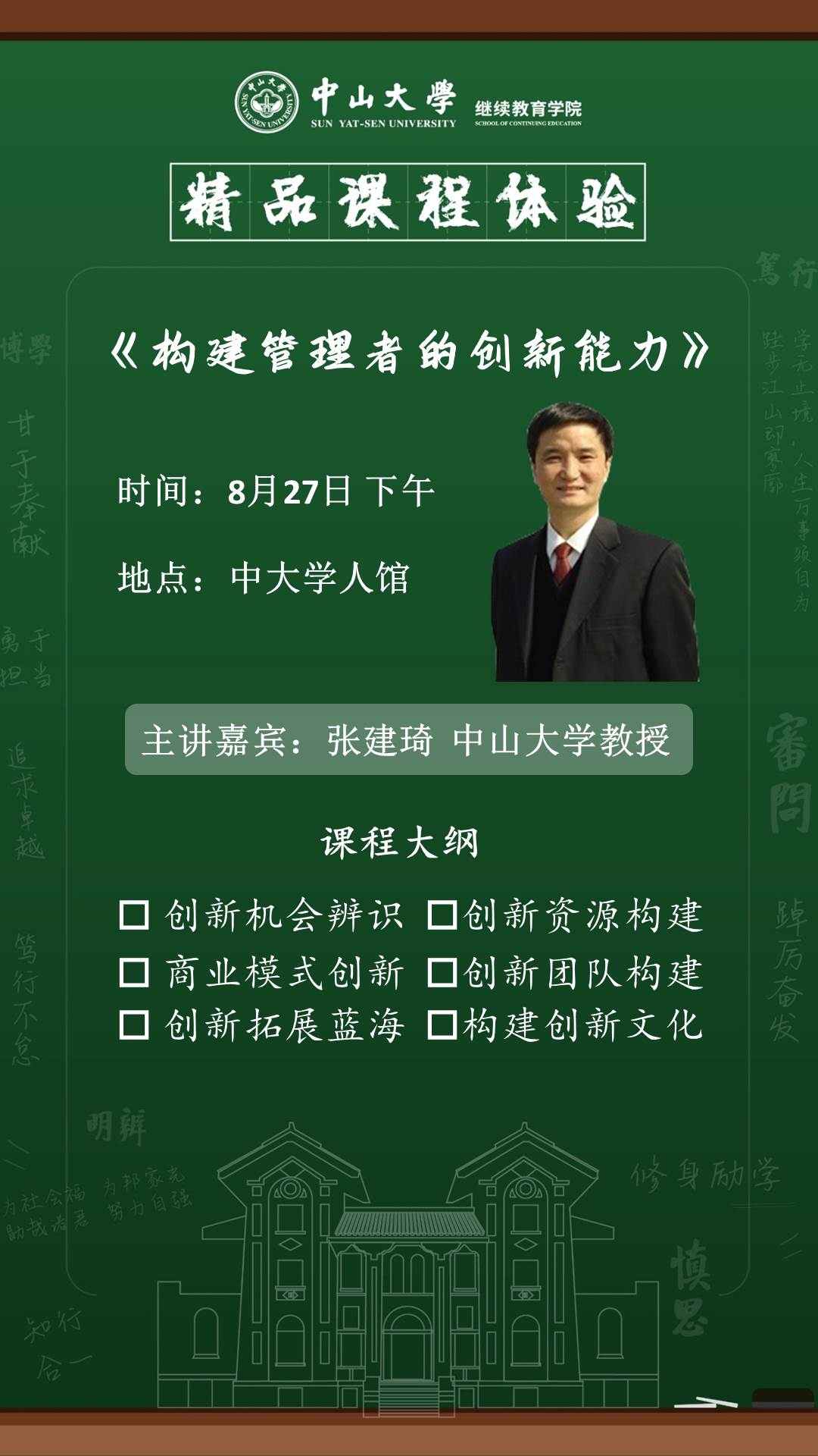 8月27日,中山大学高层管理培训公开班的新同学将会迎来开学第一课!我们邀请到中山大学张建琦教授给同学们讲授如何构建管理者的创新能力。