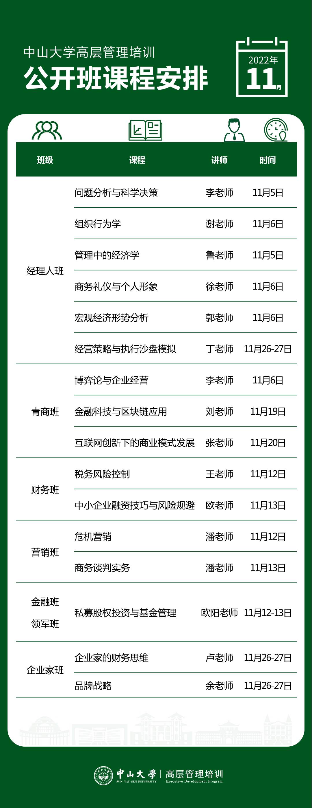 中山大学高层管理培训十一月公开课课程表