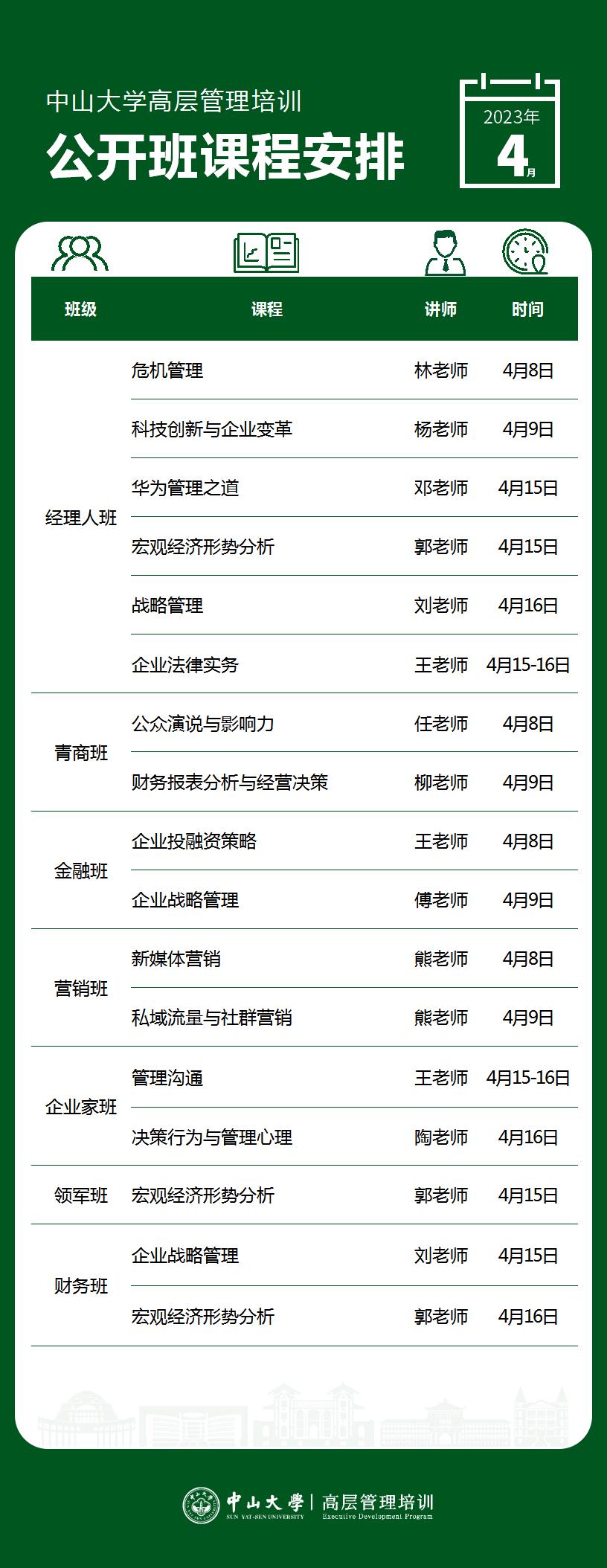 课程预告 | 中山大学高层管理培训四月公开课课程表