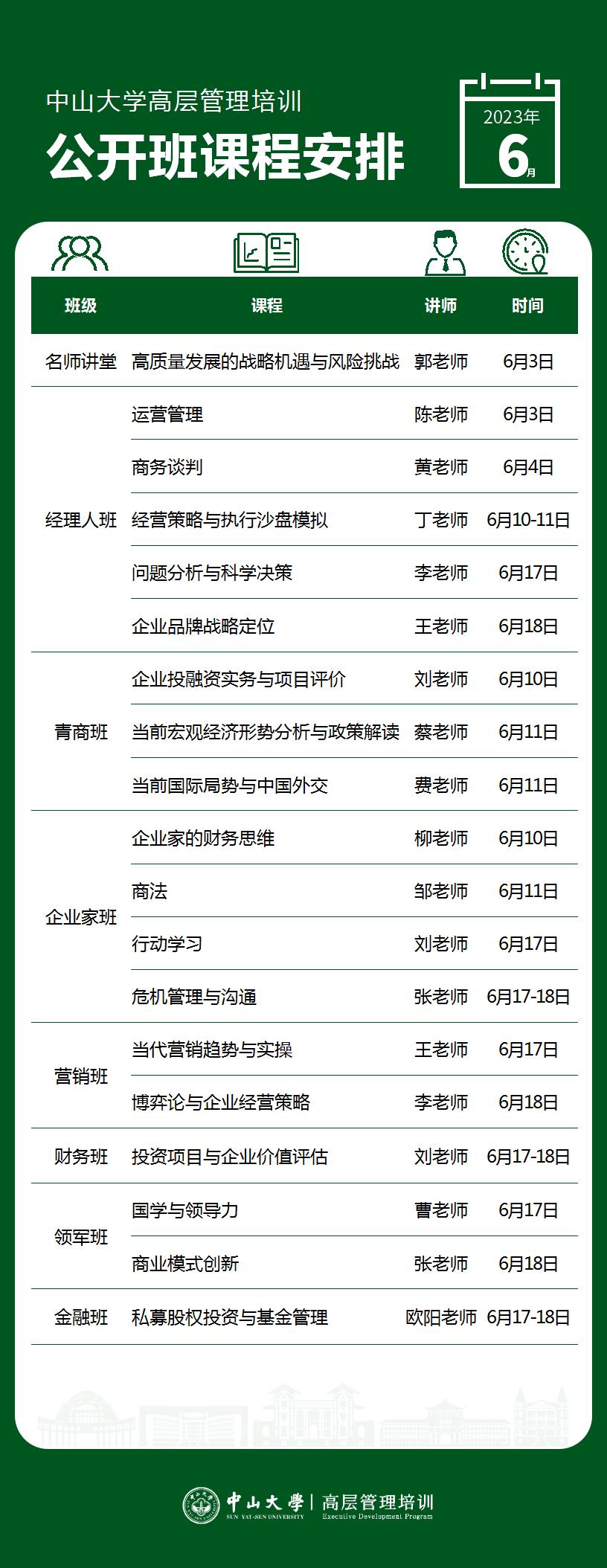 课程预告 | 中山大学高层管理培训六月公开课课程表