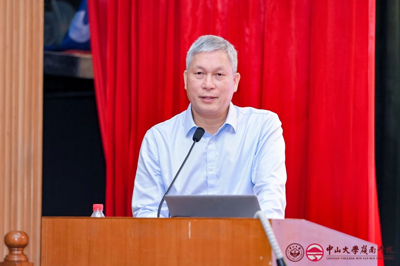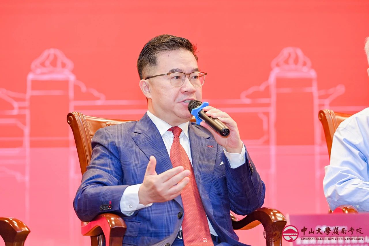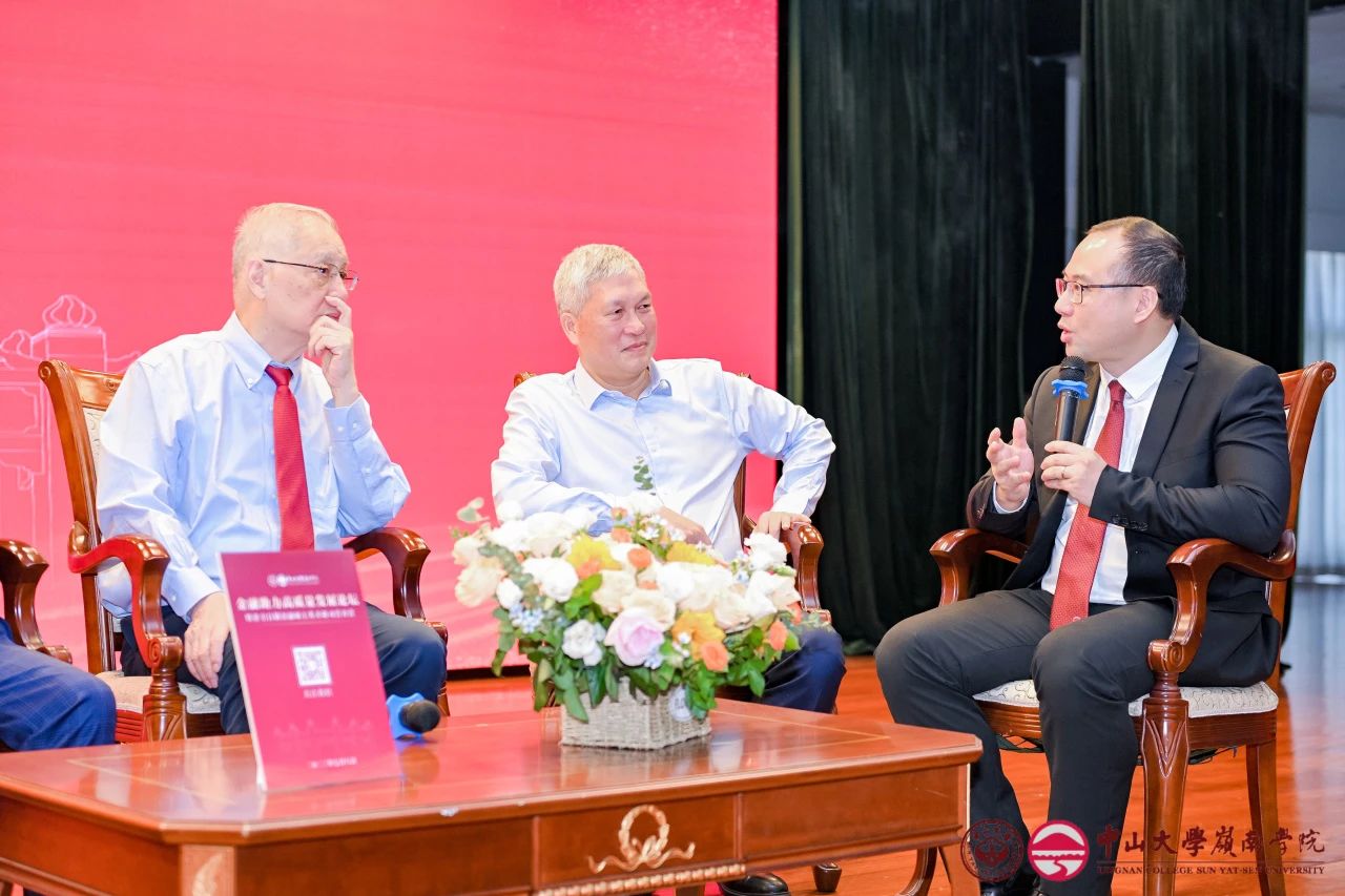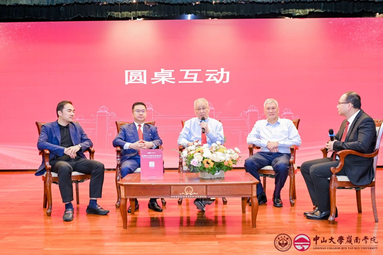 中山大学经管学部主任、岭南学院院长李善民教授,原中国银行业监督管理委员会主席、岭南学院原名誉院长刘明康教授,岭南学院党委书记黄毅博士,岭南学院副院长刘彦初教授,岭南学院本硕校友、鼎晖投资管理合伙人及夹层业务创始合伙人胡宁学长,岭南学院本硕博校友、申万宏源党委委员及申万宏源证券承销保荐公司董事长张剑学长,岭南学院EMBA校友、顺德农商银行党委书记、南海农商银行原党委书记及董事长李宜心学长等出席了本次论坛。论坛由学院院长助理、专硕教育中心主任柳建华教授主持。