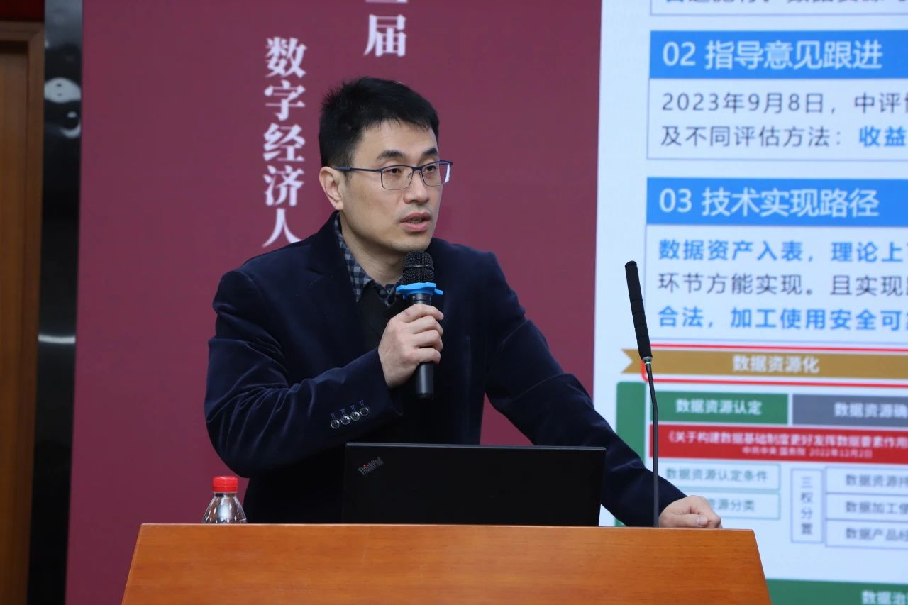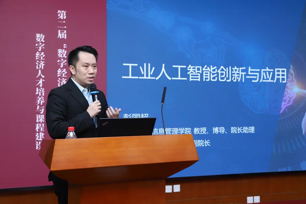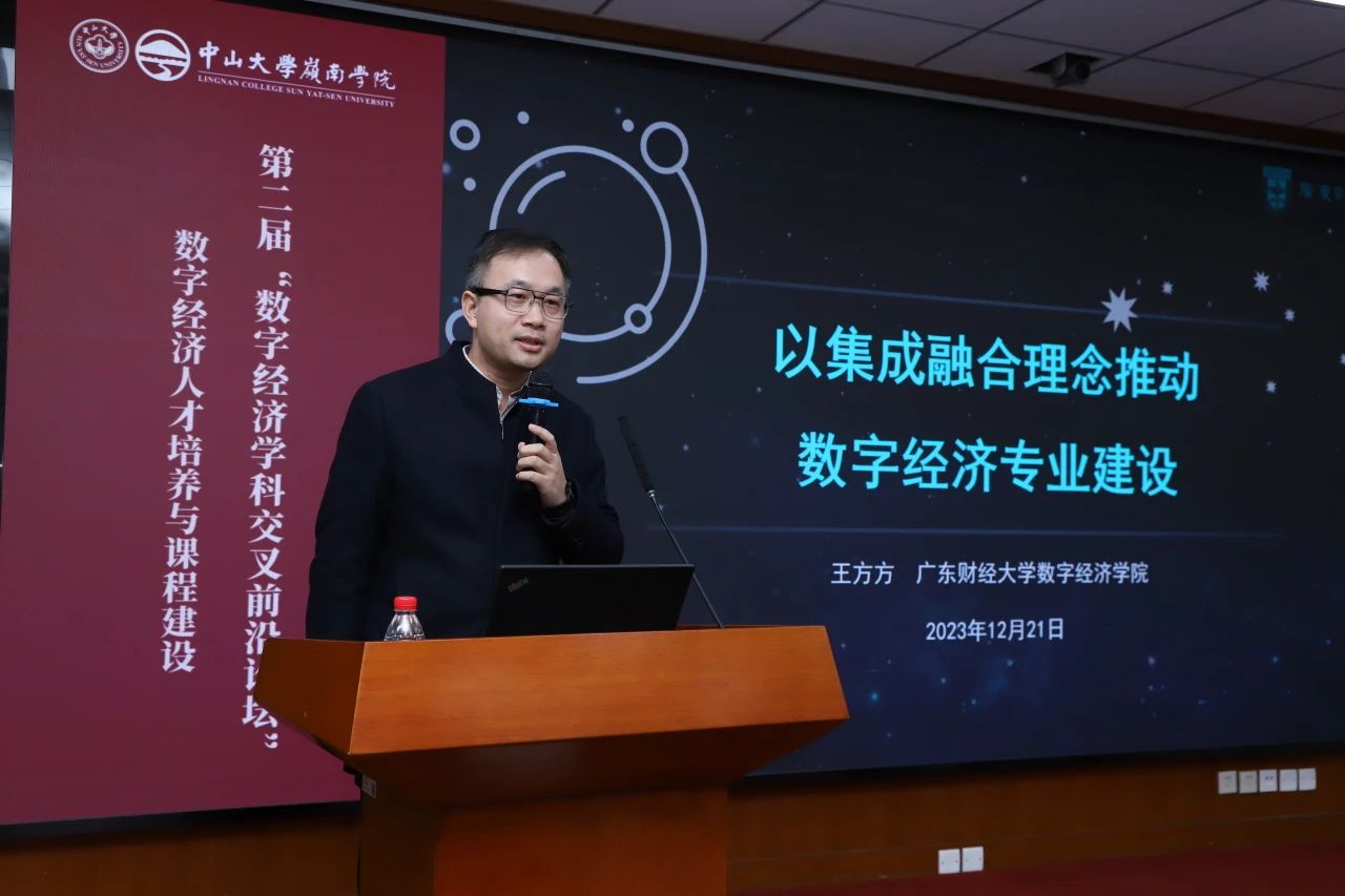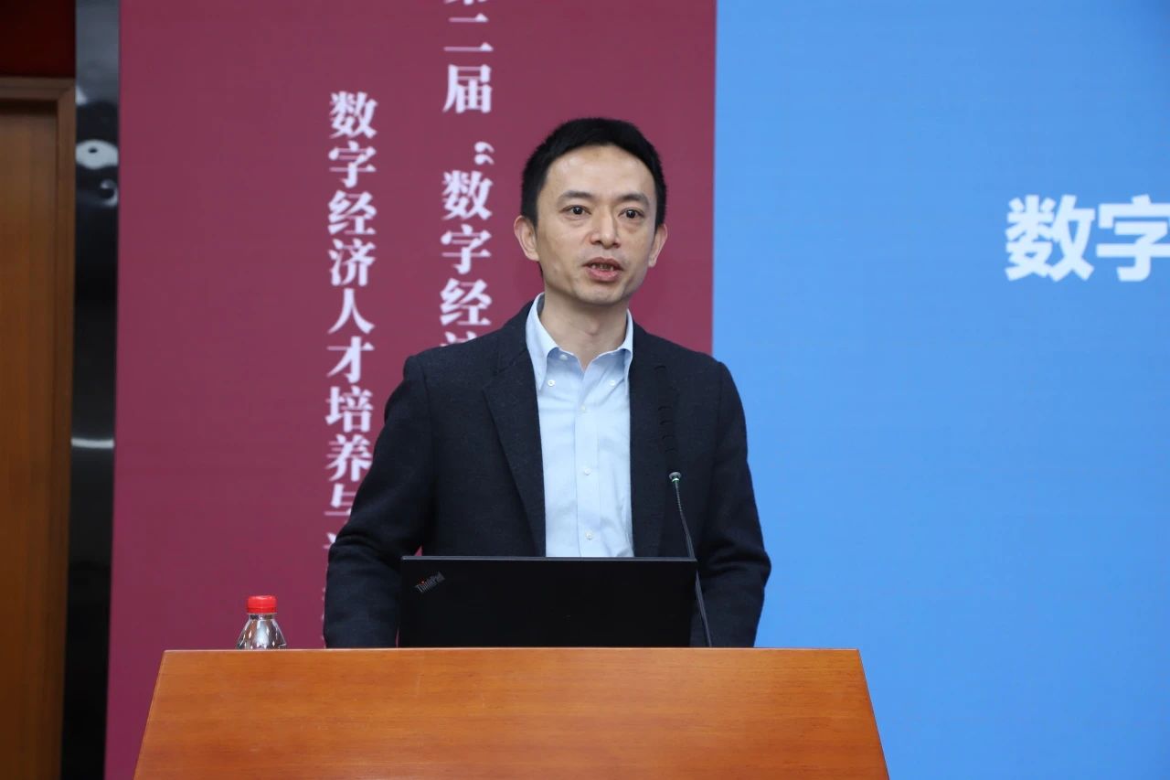 广东财经大学数字经济学院院长王方方教授的主旨演讲以《以集成融合理念推动数字经济专业建设》为题。他重点分享了广东财经大学数字经济专业的特色,主要包含全链条的人才培养体系、“商技融合”的专业课程体系和“4+3+2+1+1+1”的创新教育平台集群等几方面。