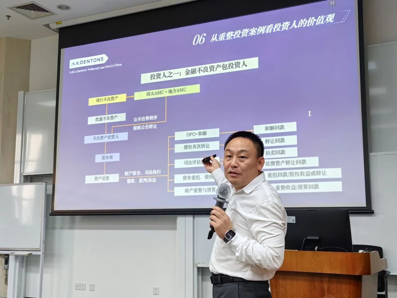 马章凯先生在讲座中详细讲解了投资不良资产时所面临的诸多挑战,并重点分析了国家政策导向、产业结构调整以及全球产业链重组对不良资产投资领域的深远影响。他分享了自己在该领域积累的宝贵经验和独到见解,指出有效的债务风险管理和高效的不良资产处置对于维护金融市场的稳定性和推动其持续发展具有至关重要的作用,这需要政府、金融机构与企业之间的紧密合作与协同努力。凭借丰富的实务经验和深厚的理论基础,马章凯先生为在场的师生们带来了一场内容丰富、分析透彻的学术盛宴。