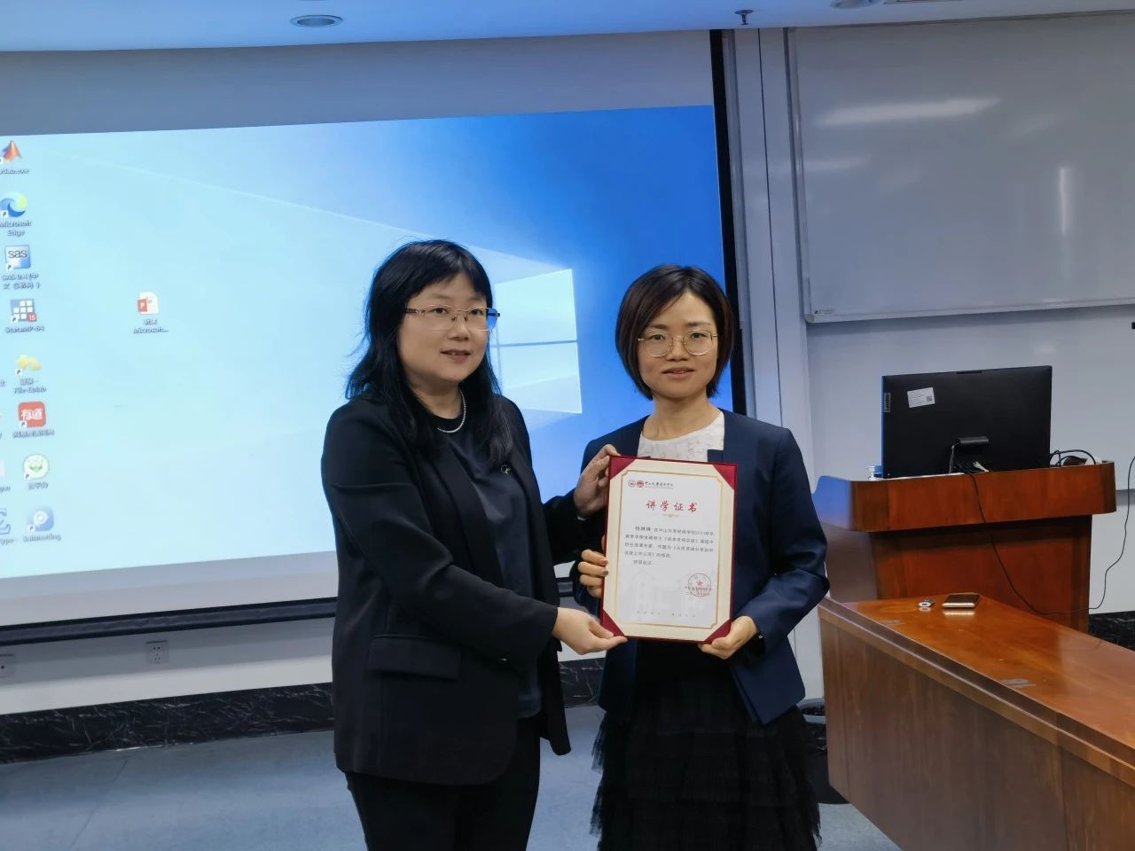 本次课程中,除了介绍投资和辨别高质量企业的相关内容外,杨老师从揭示投资的本质是以DDM现金流贴现模型为基础这一话题开始,依据实施政策,向同学们全面介绍了投资工作的具体细节,并结合实务经验,深度分析相关部门的设置、就业岗位及职业路径,为同学们提供丰富的经验参考,拓宽了同学们未来的职业规划方向。在热烈的讨论气氛中,本次《资本市场实践》系列讲座圆满结束。课后,金融学系主任戴芸副教授代表学院为杨老师颁发了讲学证书。