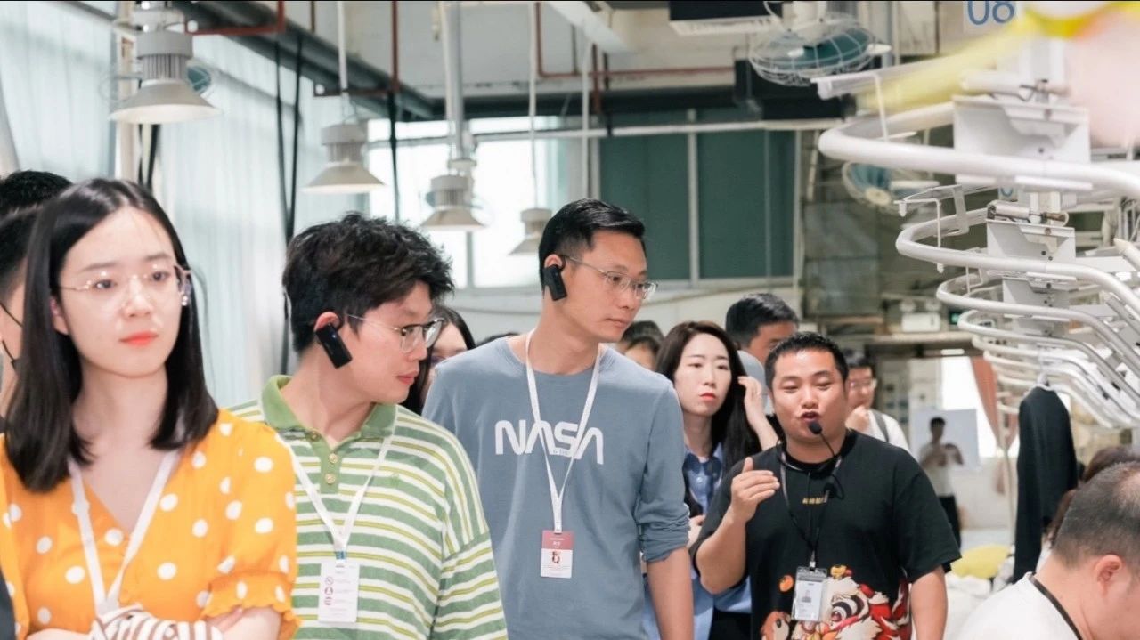 随后大家来到了现代化的制衣裁剪车间,感受到数字化改革赋能传统的制衣行业,成倍提高了效率。自动化排版、自动化剪裁和模块化的工序管理,让工厂对熟练工的依赖越来越小,布料的浪费和前期的培训成本也越来越少。“70-80层布叠在一起,一次裁剪不到五分钟时间,就可以产出二三百件衣服的布料。”负责人介绍说。大家都纷纷赞叹,原来这么传统的服装制造行业也可以有智能化,如此多的工序能够这么井井有条。