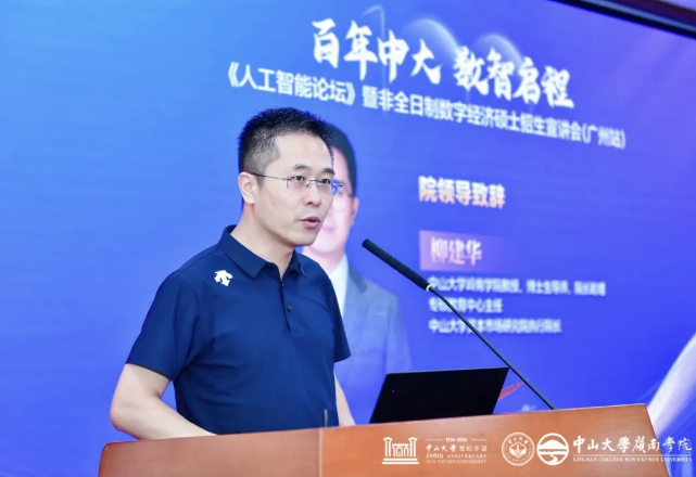 柳建华教授在致辞中首先向出席本次论坛的专家学者、校友、25级备考同学表示热烈欢迎与诚挚感谢。他表示,随着信息技术的迅猛发展,数字经济已经成为全球经济增长的主要动力之一。面对新需求、新机遇和新挑战,中山大学岭南学院推出了全国首个非全日制数字经济专业硕士学位项目,培养数字经济专业领军人才。期待有更多有志学子加入中大岭院,共同探索数字经济领域的无限可能。