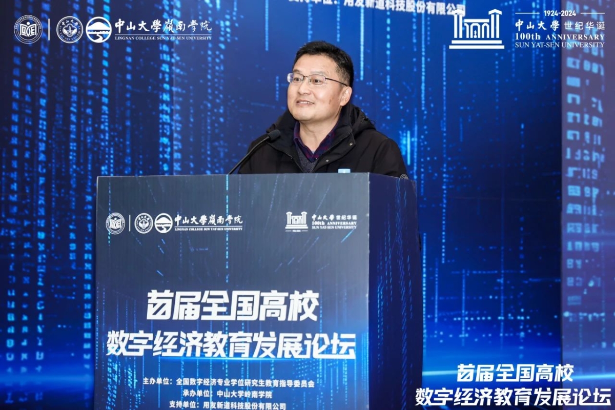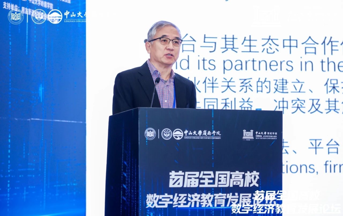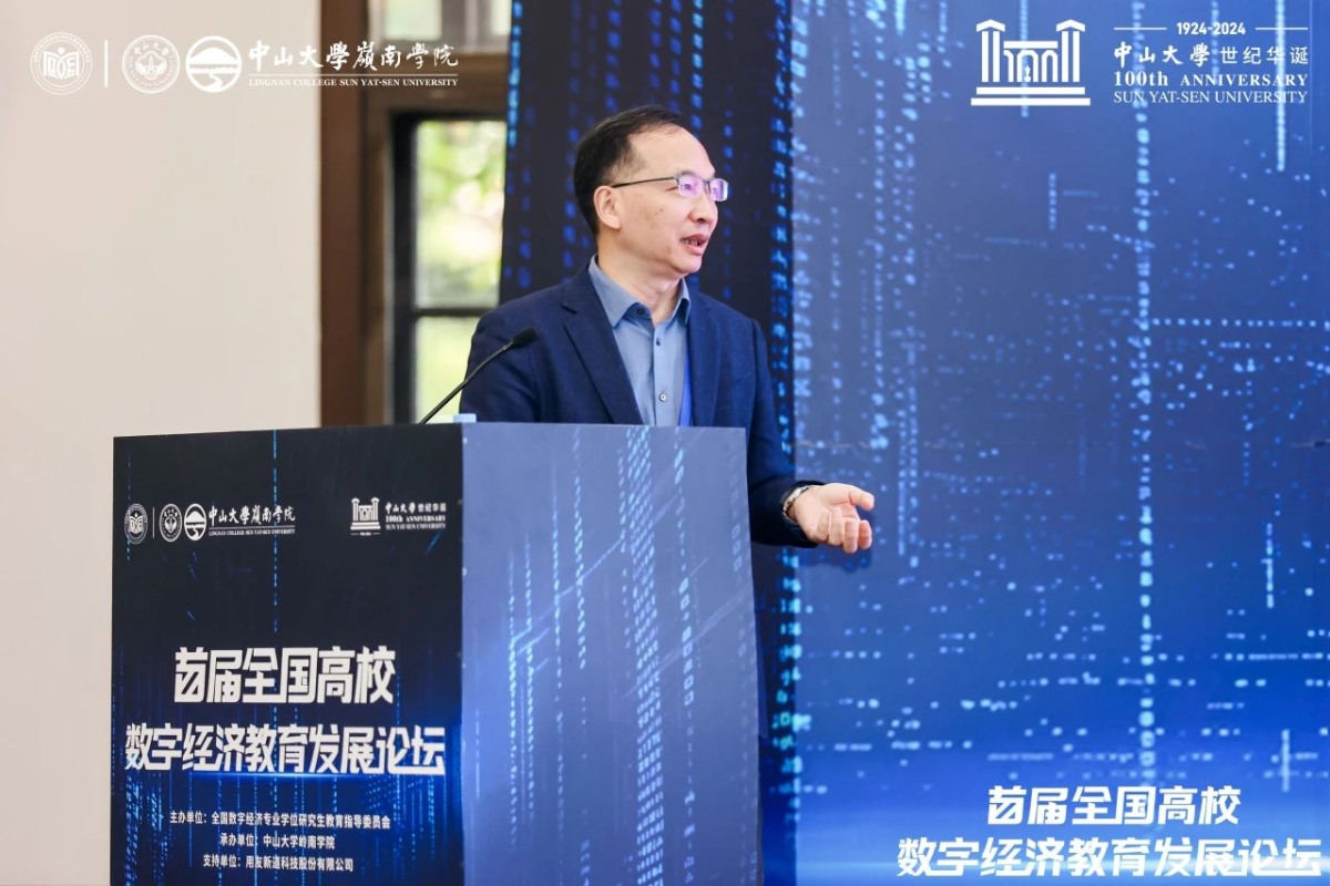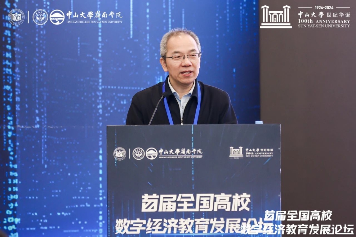 全国数字经济教指委秘书长、中国人民大学经济学院教授刘守英在致辞中代表全国数字经济专业学位研究生教育指导委员会对各位嘉宾的到来表示欢迎,对中山大学岭南学院承办首届教育发展论坛付出的辛勤努力表示感谢。他指出,数字经济人才培养需要服务国家发展战略,贯彻落实党中央关于建设数字中国的重大决策部署。各高校应积极探索构建实践导向、问题导向的人才培养体系,创新知识体系、课程体系,注重校内外导师队伍组建、产教融合基地建设等,结合自身优势和地域特点进行差异化发展。教指委已组织编写了10门数字经济专业学位研究生核心课程指南,正在编写《学位论文与申请学位实践成果基本要求》等文件,未来将常态化举办全国数字经济学术年会、教育发展论坛、案例大赛等活动。全国数字经济教指委将和各培养单位一起努力,共同推动数字经济学科建设,培养数字文明时代世界一流水平、具有中国特色的高层次经济学人才。